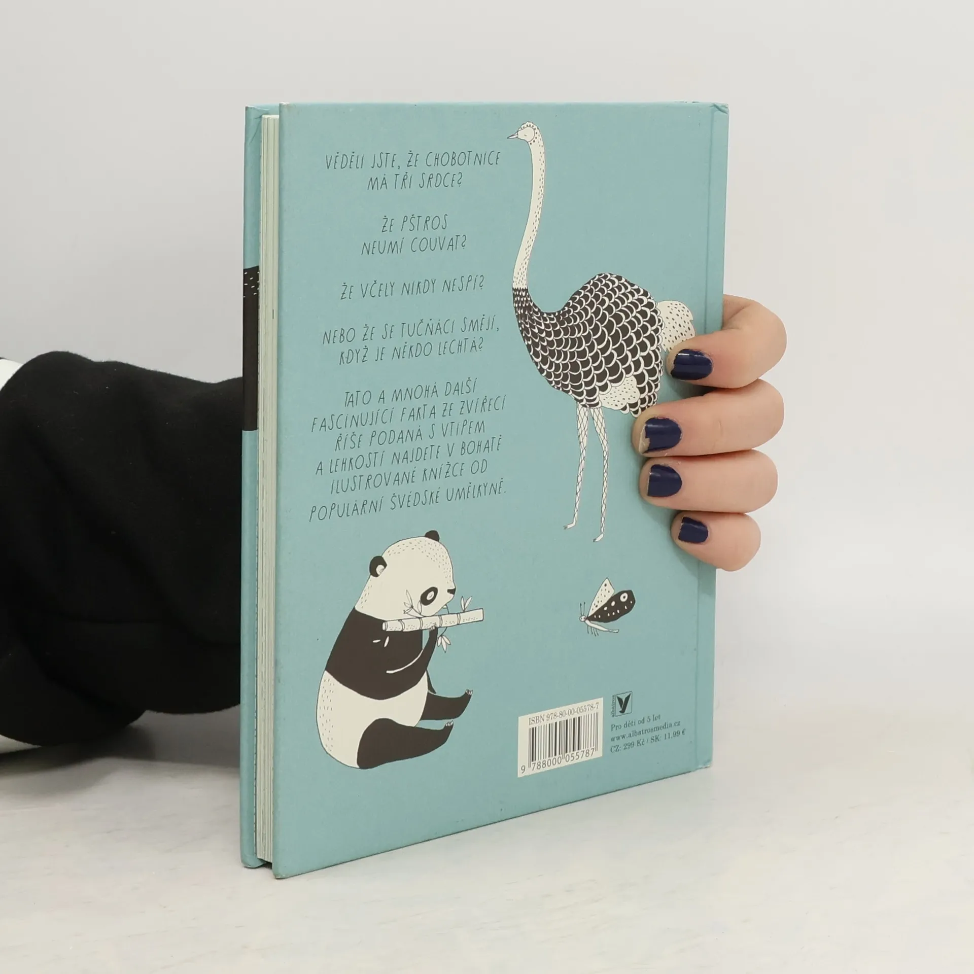 Věděli jste, že chobotnice má tři srdce? Že pštros neumí couvat? Že včely nikdy nespí? Nebo že se tučňáci smějou, když je někdo lechtá? Tato a mnohá další fascinující fakta ze zvířecí říše podaná s vtipem a lehkostí najdete v bohatě ilustrované knížce od populární švédské umělkyně.