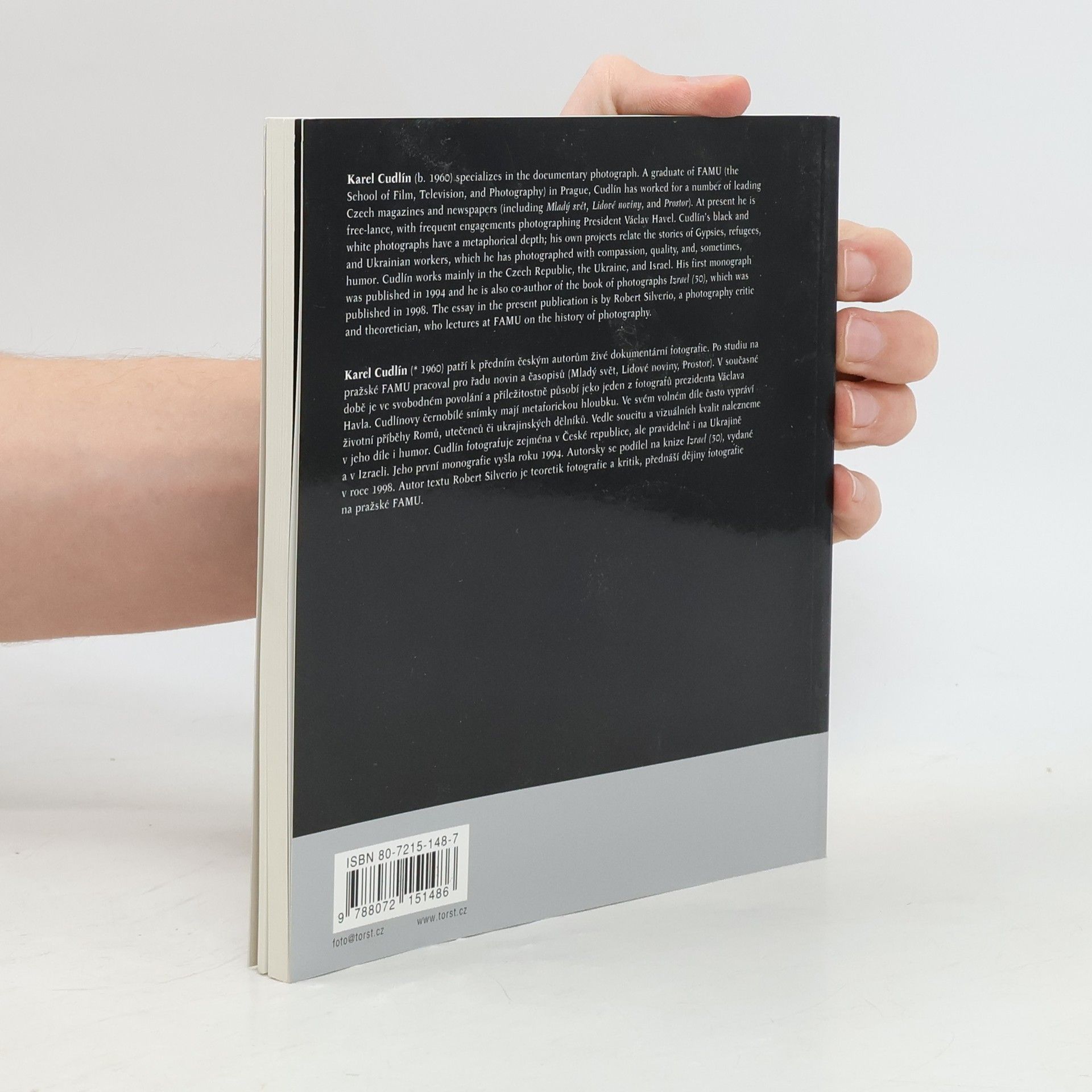 Czech documentary photographer Karel Cudlin's black-and-white images of Gypsies, refugees, and Ukrainian workers reveal compassion and sometimes humor, but always depth. He has worked for leading Czech magazines and newspapers, and frequently photographs president Vaclav Havel. His past publications include a monograph and Izrael.