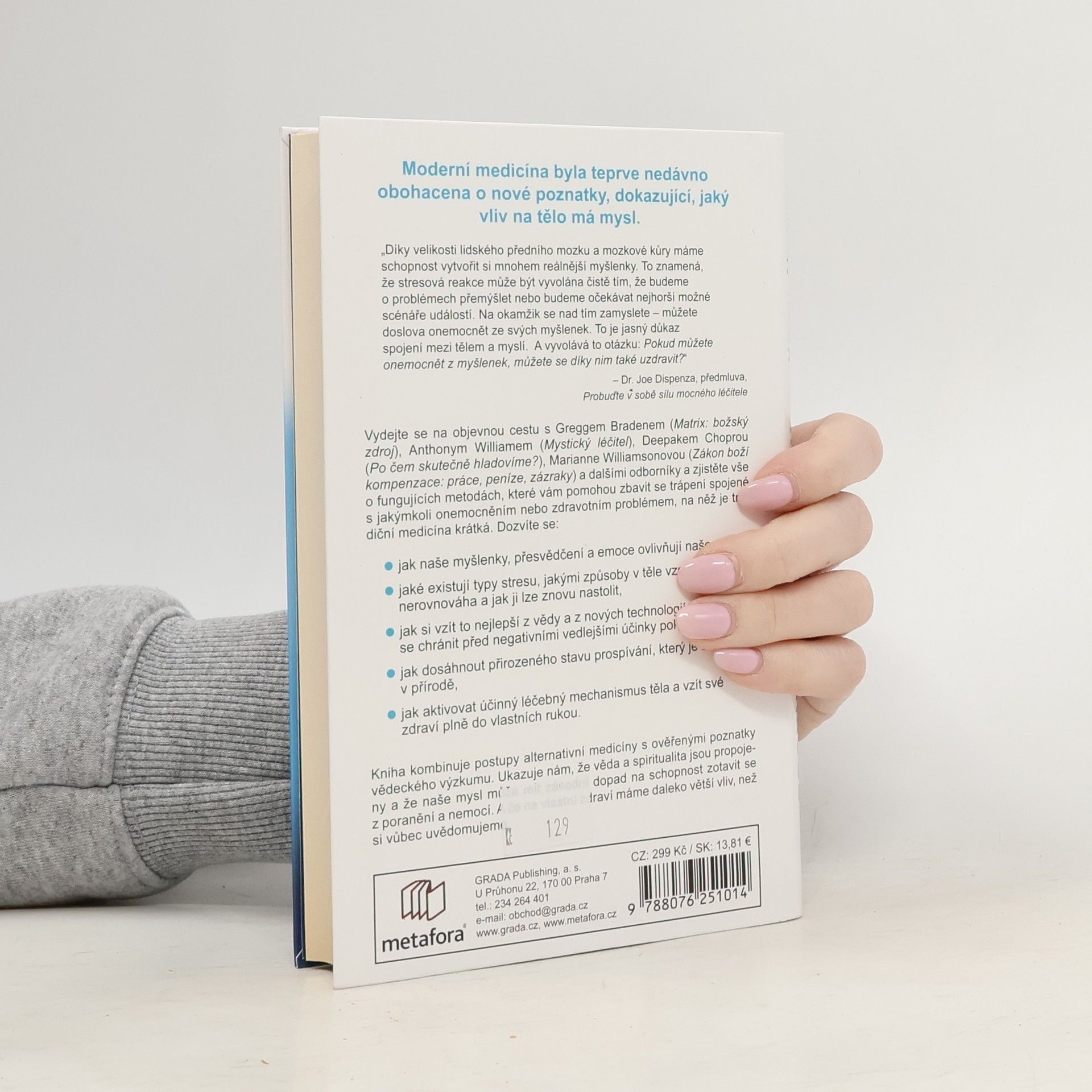 Každý orgán v lidském těle disponuje schopností sám se uzdravovat. V knize Probuďte v sobě sílu mocného léčitele Kelly Noonan Goresová shromáždila poznatky předních světových léčitelů a myslitelů (mj. Gregg Braden, Anthony William, Deepak Chopra či Marianne Williamsonová) a společně rozkrývají utajovanou pravdu o tom, jak významně můžeme ovlivnit své zdraví a duševní klid pouze prostřednictvím vlastní vůle. Kniha kombinuje postupy alternativní medicíny s ověřenými poznatky vědeckého výzkumu. Výsledkem jsou fungující metody, které vám pomohou zbavit se trápení s plejádou chronických onemocnění, na něž byla dosud tradiční medicína krátká. Naučíte se lokalizovat emoční zdroj choroby a aktivovat ozdravné síly těla a zjistíte, že i těch nejvážnějších problémů se se správným nastavením mysli dokážete během krátkého času zbavit. Probuďte v sobě sílu mocného léčitele nám ukazuje, že věda a spiritualita jsou propojeny a že naše myšlenky, přesvědčení a emoce mohou mít razantní dopad na naše zdraví a schopnost zotavit se z poranění a nemocí. A že nad vlastním zdravím máme daleko větší kontrolu, než si uvědomujeme.