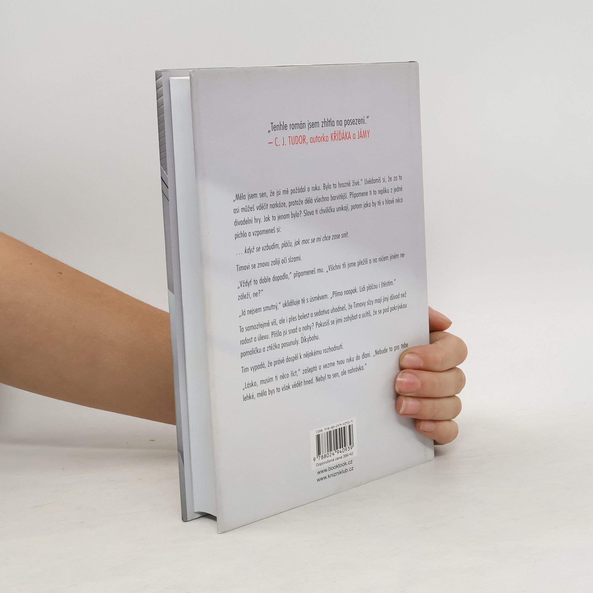 Dokonalý život. Dokonalá láska. Dokonalá lež. Nový thriller autora bestsellerů Ta přede mnou a Věř mi, který neodložíte, dokud ho nedočtete. Když se vzbudí, bolí ji každičký kousek jejího těla a nepamatuje si, kdo je, kde se nachází ani jak se tam ocitla, a tak ji hned napadne, že je v nemocnici – že měla těžkou nehodu. Muž sedící vedle její postele tvrdí, že je její muž. Ona se prý jmenuje Abbie, je nadaná umělkyně, vášnivá surfařka, milující matka a dokonalá manželka. A také jí tvrdí, že měla před pěti lety děsivou nehodu a jen díky tomu, že je Tim vizionář a obrovskému technologickému průlomu byla přivedena zpět z propasti. Abbie je zázrakem vědy. Ovšem když se Abbie začnou vybavovat střípky vzpomínek, zjišťuje, že její předchozí život asi nebyl tak úžasný, jak jí Tim tvrdí. Může mu věřit? A co se vlastně před pěti lety stalo?