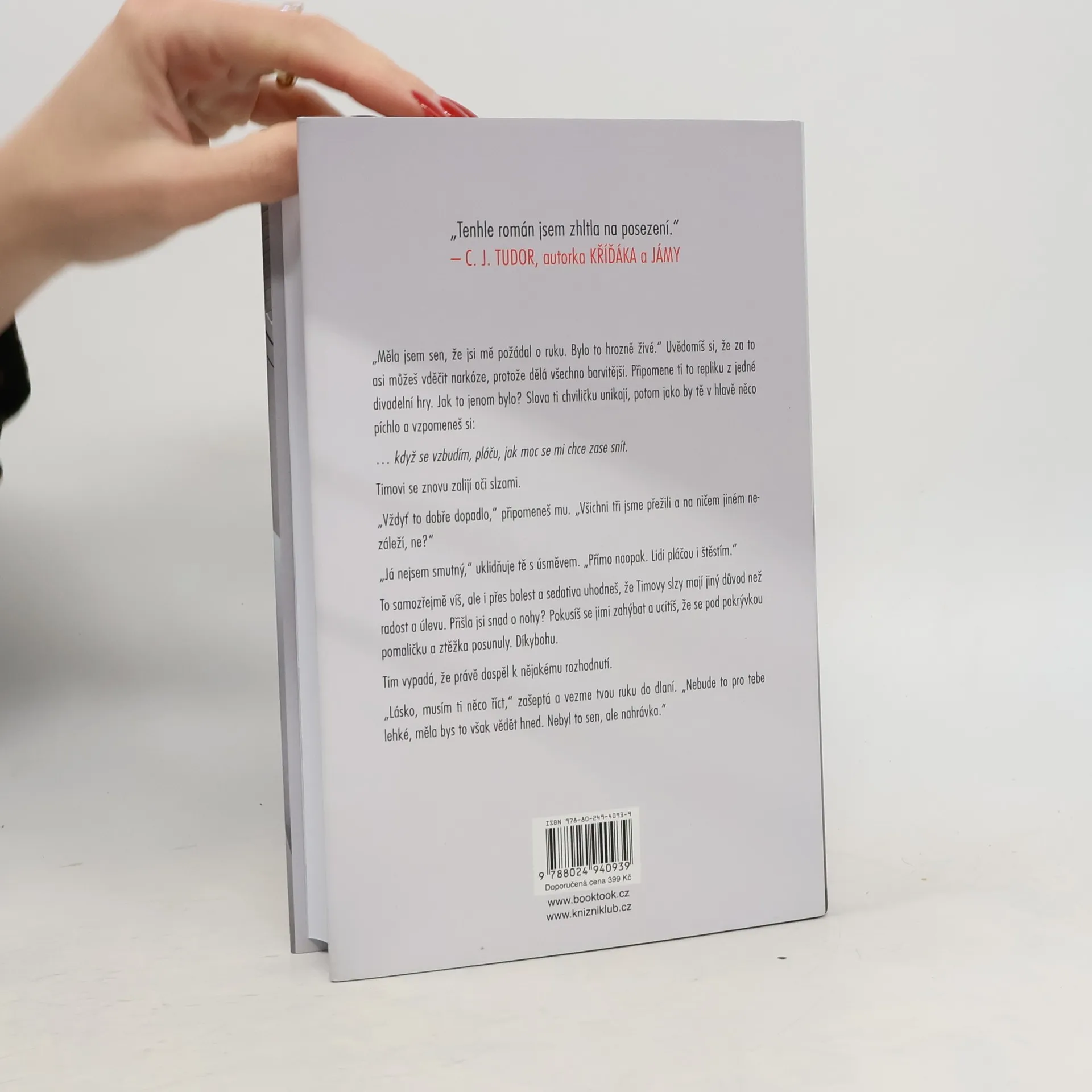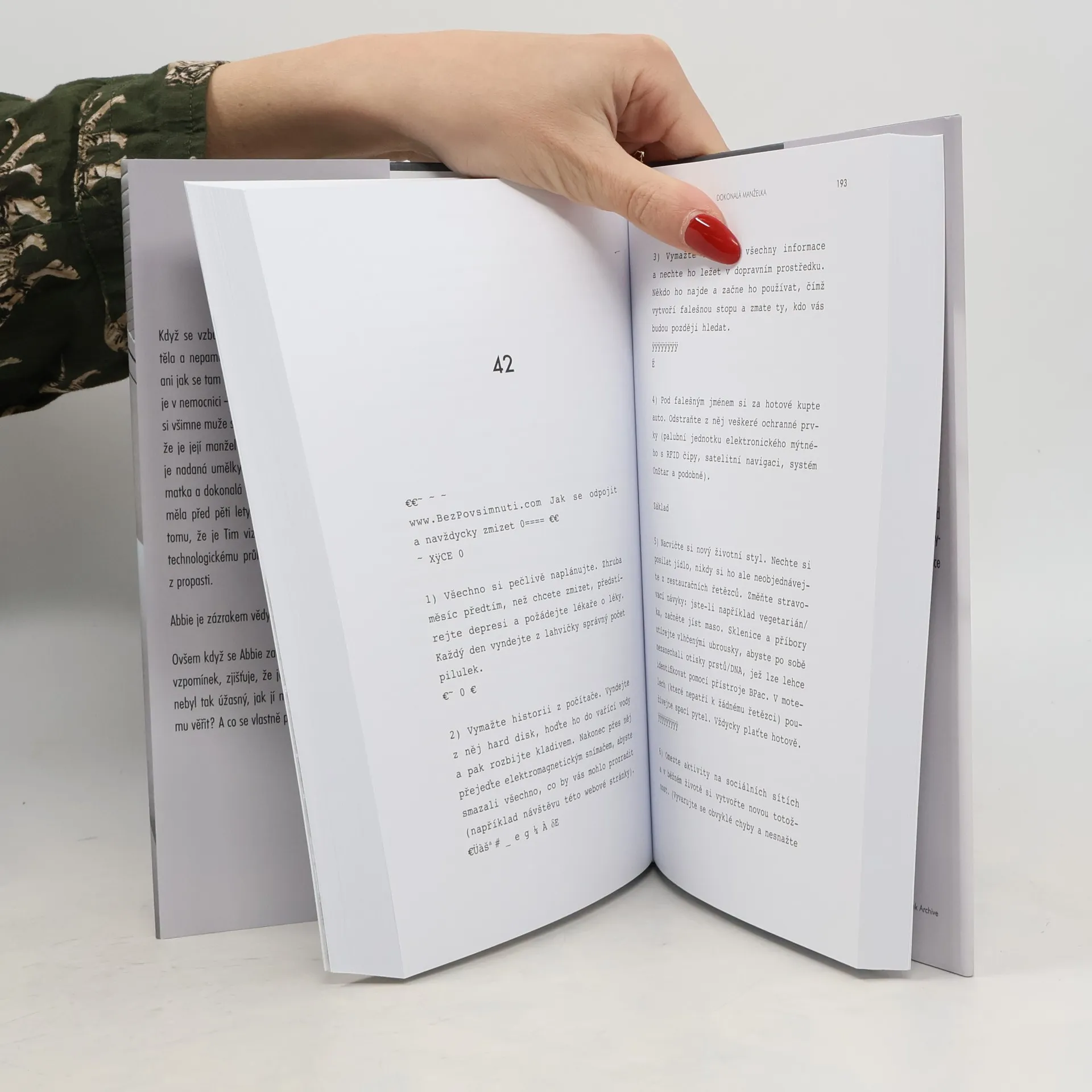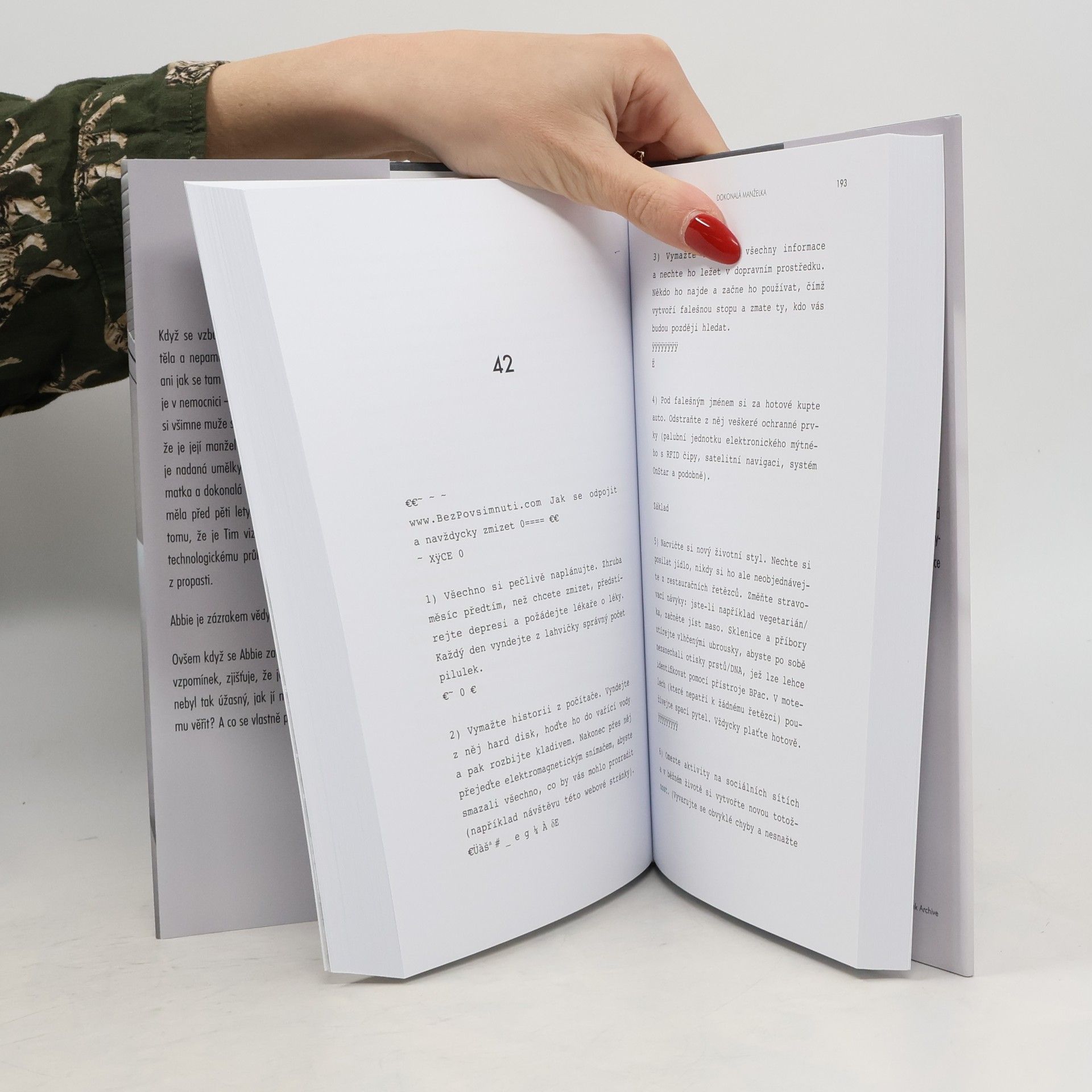 Dokonalý život. Dokonalá láska. Dokonalá lež. Nový thriller autora bestsellerů Ta přede mnou a Věř mi, který neodložíte, dokud ho nedočtete. Když se vzbudí, bolí ji každičký kousek jejího těla a nepamatuje si, kdo je, kde se nachází ani jak se tam ocitla, a tak ji hned napadne, že je v nemocnici – že měla těžkou nehodu. Muž sedící vedle její postele tvrdí, že je její muž. Ona se prý jmenuje Abbie, je nadaná umělkyně, vášnivá surfařka, milující matka a dokonalá manželka. A také jí tvrdí, že měla před pěti lety děsivou nehodu a jen díky tomu, že je Tim vizionář a obrovskému technologickému průlomu byla přivedena zpět z propasti. Abbie je zázrakem vědy. Ovšem když se Abbie začnou vybavovat střípky vzpomínek, zjišťuje, že její předchozí život asi nebyl tak úžasný, jak jí Tim tvrdí. Může mu věřit? A co se vlastně před pěti lety stalo?