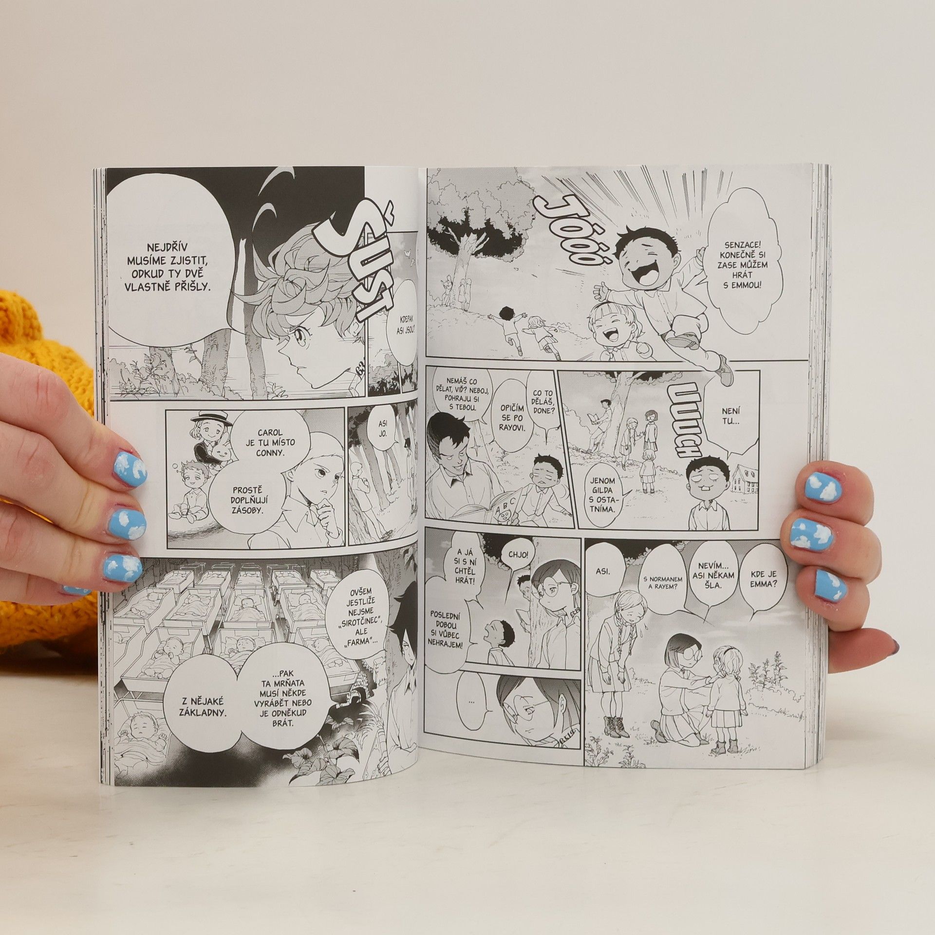 Děti v sirotčinci Grace Field House žijí pod dohledem laskavé vychovatelky a zdá se, že ke štěstí jim téměř nic nechybí. Netuší však, že to je jen pozlátko, a že se z nich všech postupně stane potrava pro démony. Podaří se jim zjistit pravdu – a utéct – dřív, než bude příliš pozdě? O tom vypráví jedna z nejpopulárnějších mang současnosti, která se rychle mění v komiksovou legendu!