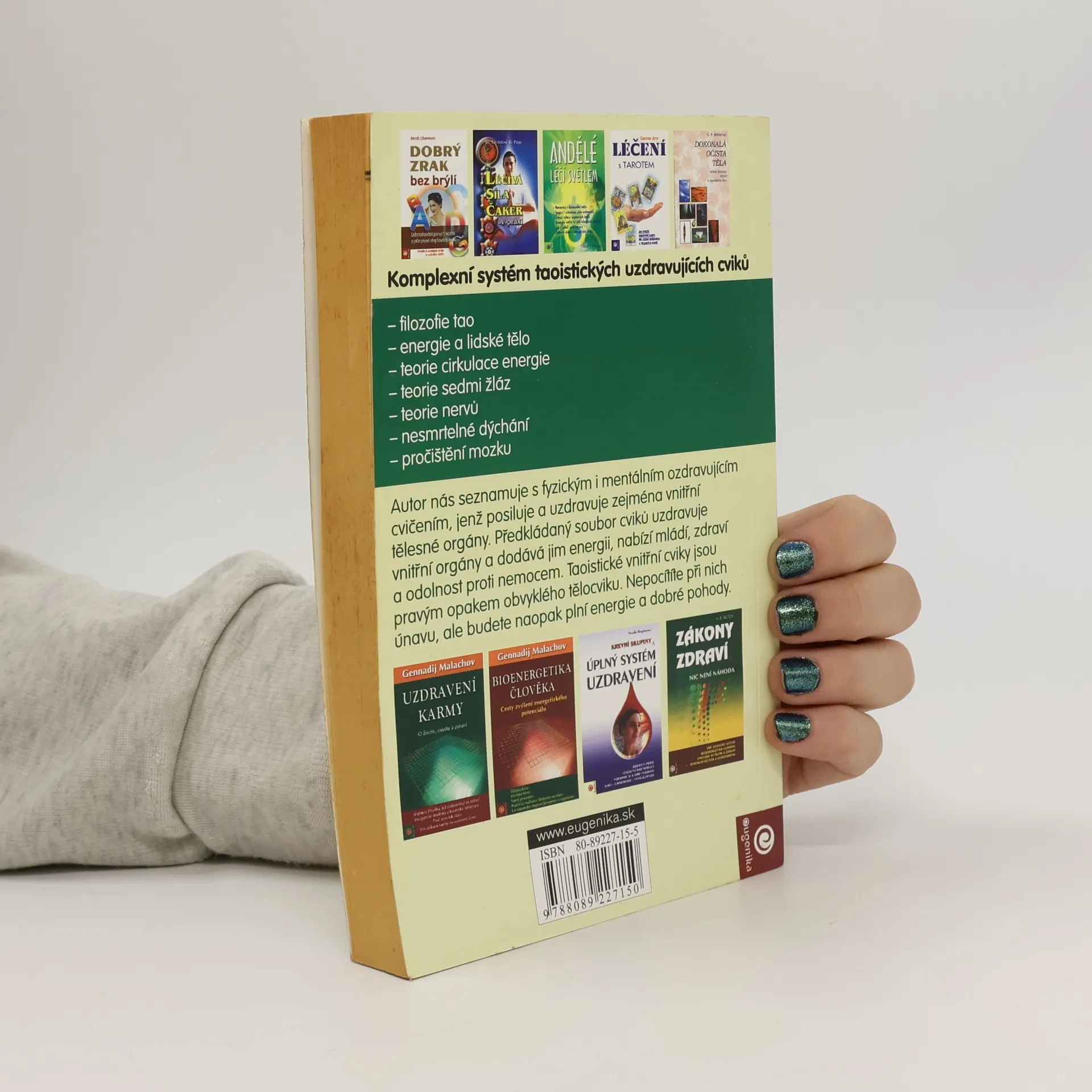 Komplexní systém taoistických uzdravujících cviků. Autor nás uvádí do tajů původního taoistického učení a z něho vycházející účinné přirozené metody, která je založená na duševních a fyzických ozdravujících cvicích, jež posilují a uzdravují zejména vnitřní orgány těla.