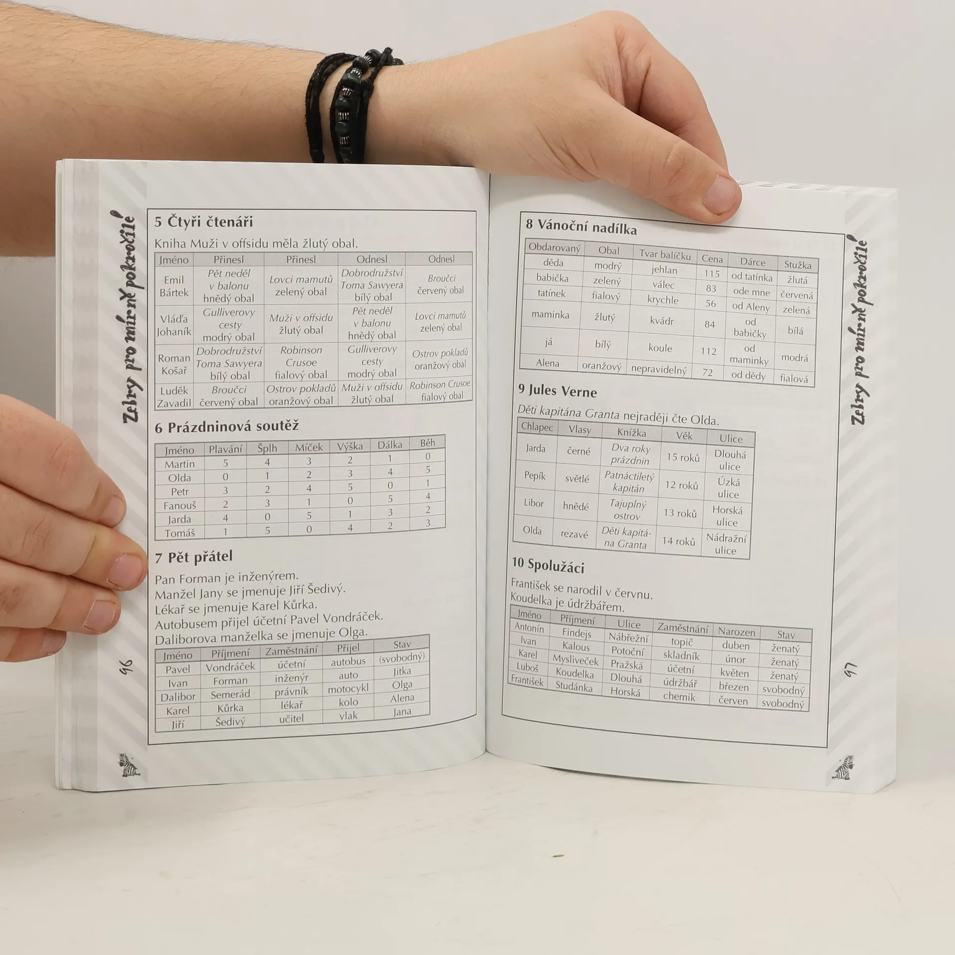Chystá se Vaše dítě ke SCIO testům? Tato kniha je jediná na trhu, která Vám pomůže SCIO testy úspěšně absolvovat. V knize naleznete logické příklady seřazené dle náročnosti s návodem na řešení. Nebaví Vás Sudoku? Zkuste bystřit šedé buňky mozkové Zebřičkami, při kterých si nejen procvičíte mozkové závity, ale také se dobře pobavíte.