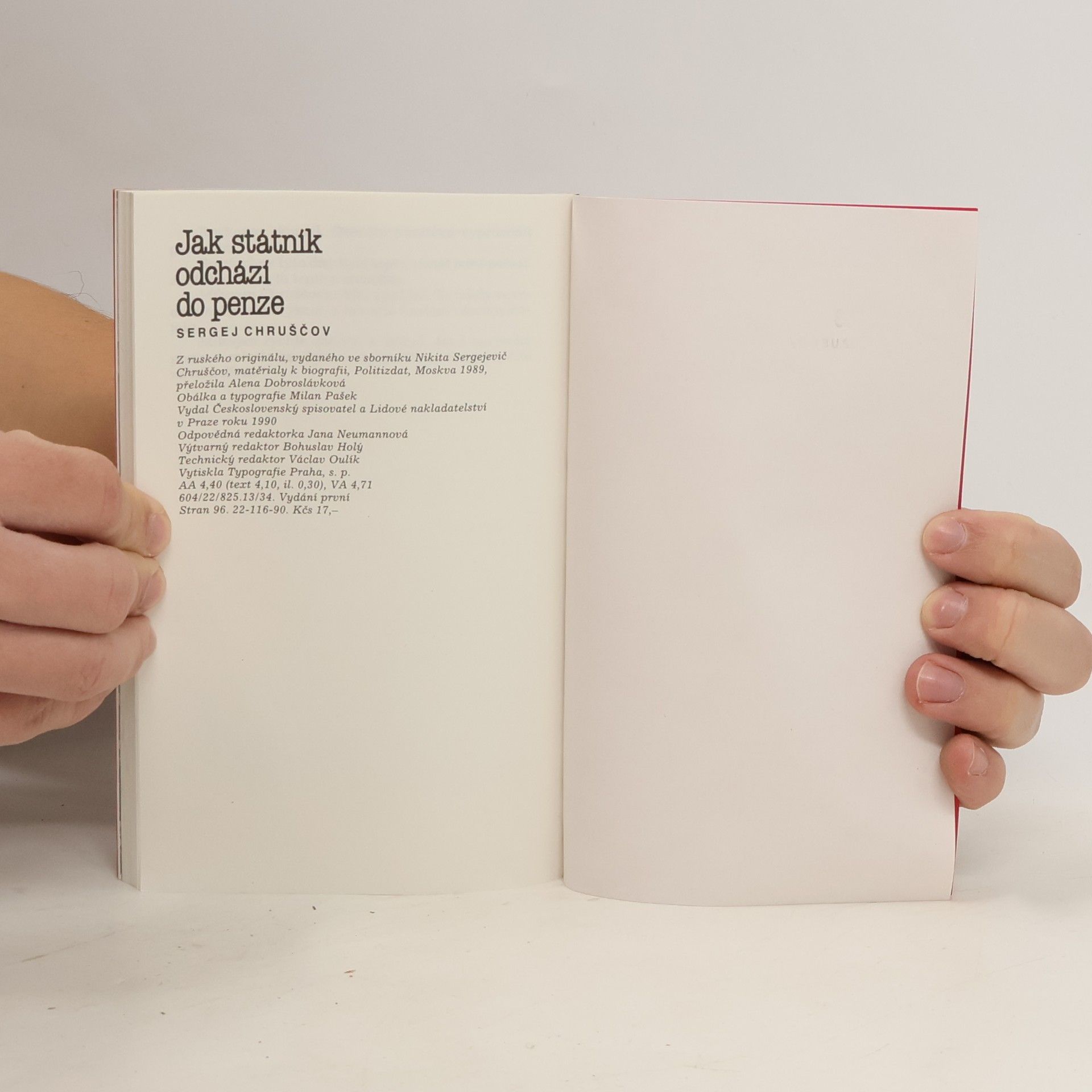 N. S. Chruščov. Jaký to byl člověk? Proč jeho jméno bylo tak dlouho tabu? Za jakých okolností vlastně odešel z veřejného života? K nejzajímavějším svědectvím patří vzpomínky státníkova syna. Zachycují právě onen zlom v životě N. S. Chroščova - dny, kdy byl tento muž "odepisován".