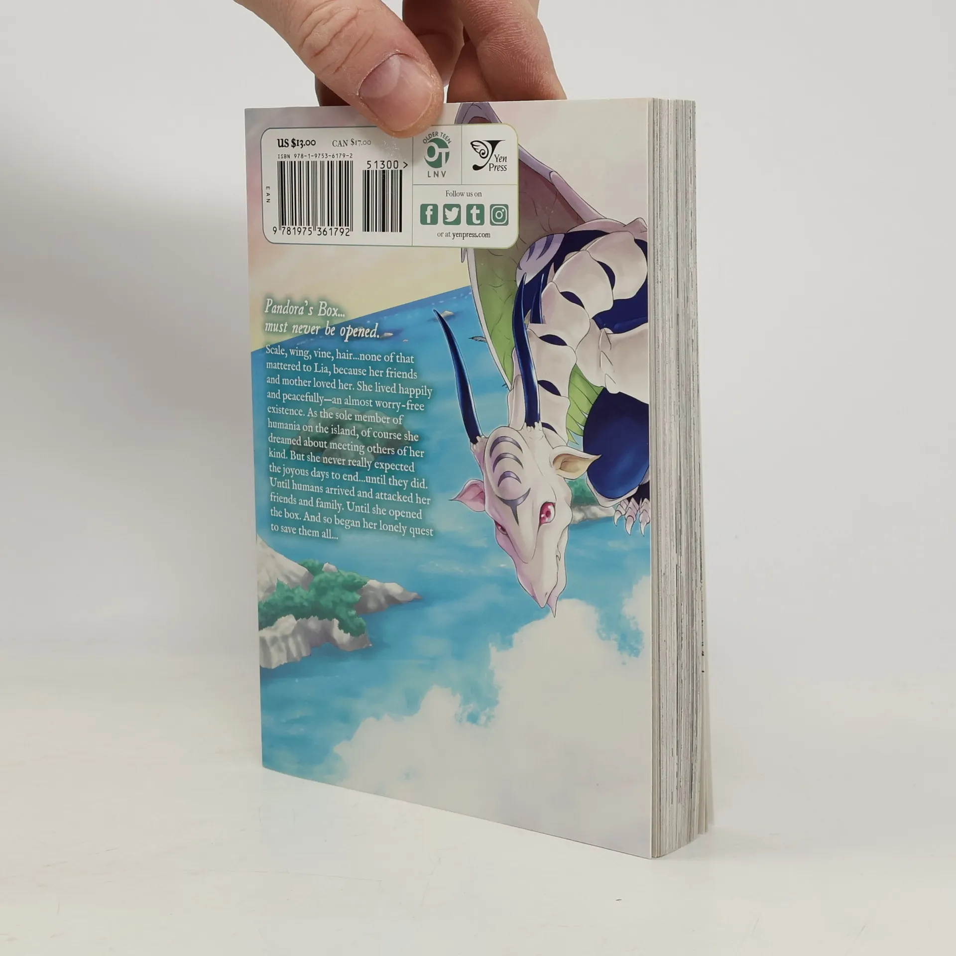 Pandora’s Box... must never be opened.Scale, wing, vine, hair...none of that mattered to Lia, because her friends and mother loved her. She lived happily and peacefully—an almost worry-free existence. As the sole member of humania on the island, of course she dreamed about meeting others of her kind. But she never really expected the joyous days to end...until they did. Until humans arrived and attacked her friends and family. Until she opened the box. And so began her lonely quest to save them all...