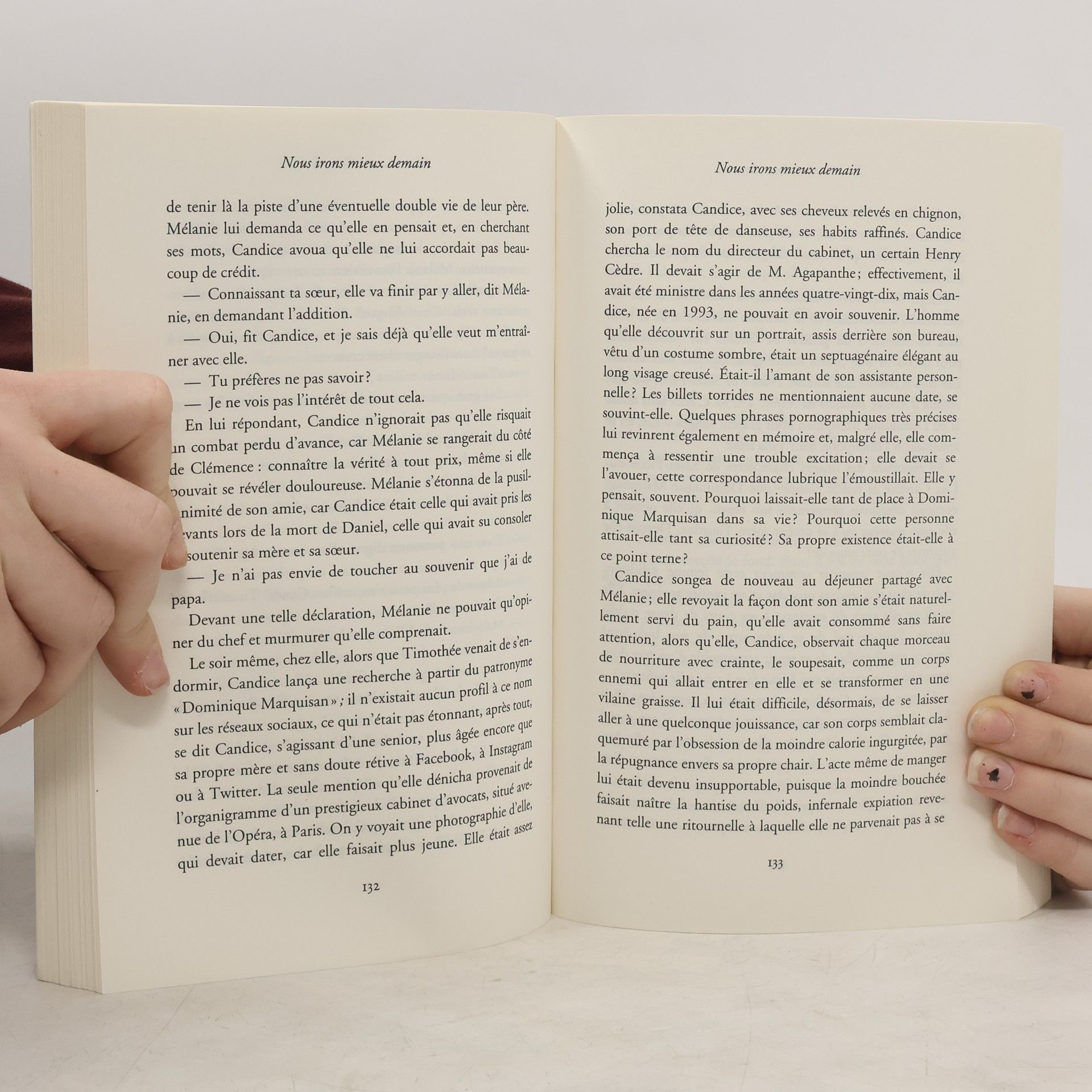 Mère célibataire de vingt-huit ans, ébranlée par le décès récent de son père, Candice Louradour mène une vie sans saveur. Un soir d'hiver pluvieux, à Paris, elle est témoin d'un accident de la circulation. Une femme est renversée et grièvement blessée.Bouleversée, Candice lui porte assistance, puis se rend à son chevet à l'hôpital. Petit à petit, la jeune ingénieure du son et la convalescente se lient d'amitié.Jusqu'au jour où Dominique demande à Candice de pénétrer dans son appartement pour y récupérer quelques affaires.Dès lors, tout va basculer...Pourquoi Candice a-t-elle envie de fouiller l'intimité d'une existence dont elle ne sait finalement rien ? Et qui est cette Dominique Marquisan, la cinquantaine élégante, si solitaire et énigmatique ?Nous irons mieux demain retrace le chemin d'une femme fragile vers l'acceptation de soi, vers sa liberté. Il fait aussi écho aux derniers mots d'Émile Zola, le passager clandestin de cette histoire.