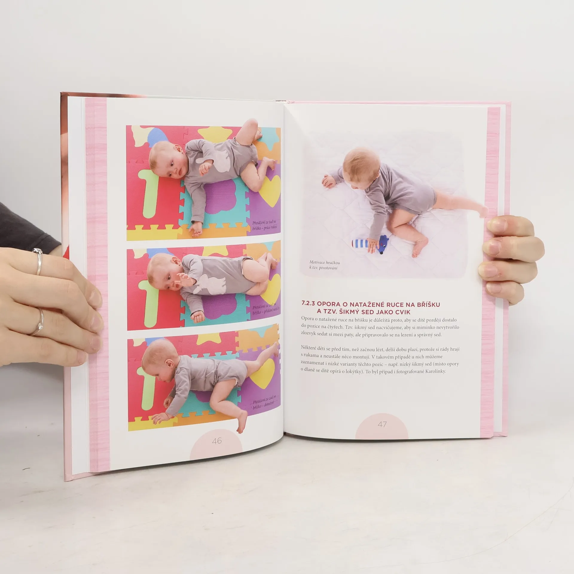 Rady pro rodiče, jak dobře zvládnout pohybový vývoj dítěte od narození do jednoho roku Odložte na chvíli knihu a podívejte se na své ruce. Něžně, klidně a pevně obejměte své miminko. Nikdo vaše dlaně umění dotyku neučil, přesto přesně ví, co mají dělat. Nejlepší knihou o vašem miminku je a vždy bude vaše miminko samo. Žádná sebelepší publikace nemůže nahradit signály, které vám vaše děťátko od narození vysílá. Naslouchejte mu a naučte se jeho signály správně číst. Váš úkol je jediný - milovat své dítě a vytvářet takové prostředí, které mu pomůže v jeho přirozeném vývoji, nikoliv naopak. Tato kniha si klade za cíl inspirovat vás k tomu, abyste si se svým děťátkem v jednotlivých fázích vývoje přirozeně hráli. Každé dítě je od narození osobnost, a proto nemůžeme očekávat, že se všechny děti budou v daném období pohybovat stejně. Nejdůležitější ale je žádnou fázi vývoje nepřeskočit.