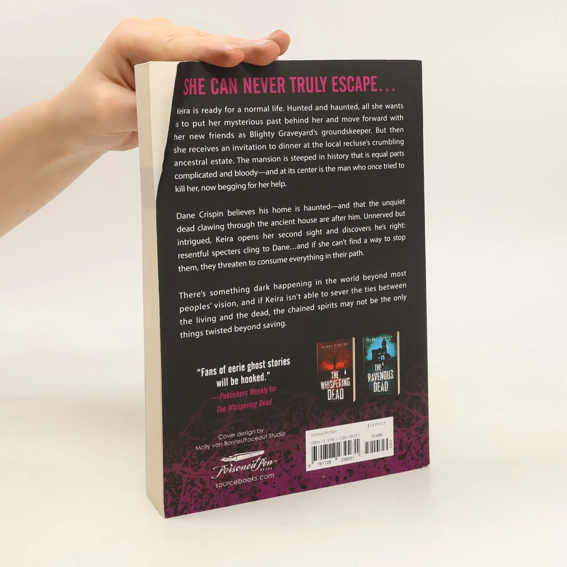 In the third installment of the Gravekeeper series by USA Today bestselling author Darcy Coates, Keira must decide if she should use her ability to contact ghosts to help the man who once tried to kill her. Hunted and haunted, all she wants is to put her mysterious past behind her and move forward with her new friends as Blighty Graveyard's groundskeeper. But then she receives an invitation to dinner at the local recluse's crumbling ancestral estate. The mansion is steeped in history that is equal parts complicated and bloody--and at its center is the man who once tried to kill her, now begging for her help. Dane Crispin believes his home is haunted--and that the unquiet dead clawing through the ancient house are after him. Unnerved but intrigued, Keira opens her second sight and discovers he's right: resentful specters cling to Dane...and if she can't find a way to stop them, threaten to consume everything in their path. There's something dark happening in the world beyond most peoples' vision, and if Keira isn't able to sever the ties between the living and the dead, the chained spirits may not be the only things twisted beyond saving. Horror Novels By Darcy Coates: The Haunting of Leigh Harker The Haunting of Ashburn House From Below Gallows Hill The House Next Door Carrow Haunt Craven Manor Voices in the Snow