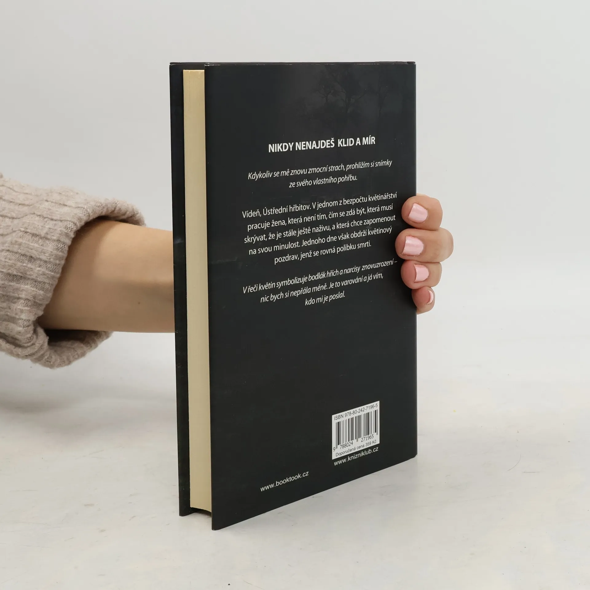 Vídeň, Ústřední hřbitov. V jednom z bezpočtu květinářství pracuje žena, která není tím, čím se zdá být, která musí skrývat, že je stále ještě naživu, a která chce zapomenout na svou minulost. Jednoho dne však obdrží květinový pozdrav, jenž se rovná polibku smrti. V řeči květin reprezentuje bodlák hřích a narcisy symbolizují znovuzrození – nic bych si nepřála méně. Je to varování a já vím, kdo mi ho poslal.