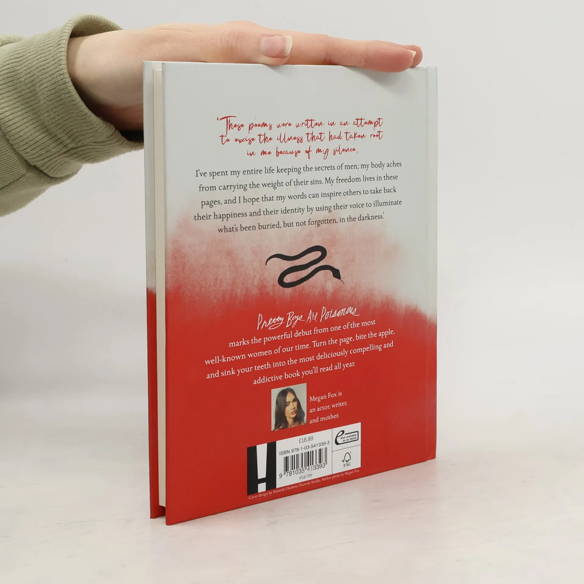 Megan Fox showcases her wicked humor throughout a heartbreaking and dark collection of poetry. Over the course of more than 80 poems, Fox chronicles all the ways in which we fit ourselves into the shape of the ones we love, even if it means losing ourselves in the process.These poems were written in an attempt to excise the illness that had taken root in me because of my silence. I've spent my entire life keeping the secrets of men, my body aches from carrying the weight of their sins. My freedom lives in these pages, and I hope that my words can inspire others to take back their happiness and their identity by using their voice to illuminate what's been buried, but not forgotten, in the darkness, says Fox.Pretty Boys Are Poisonous marks the powerful debut from one of the most well-known women of our time. Turn the page, bite the apple, and sink your teeth into the most deliciously compelling and addictive book you'll read all year.