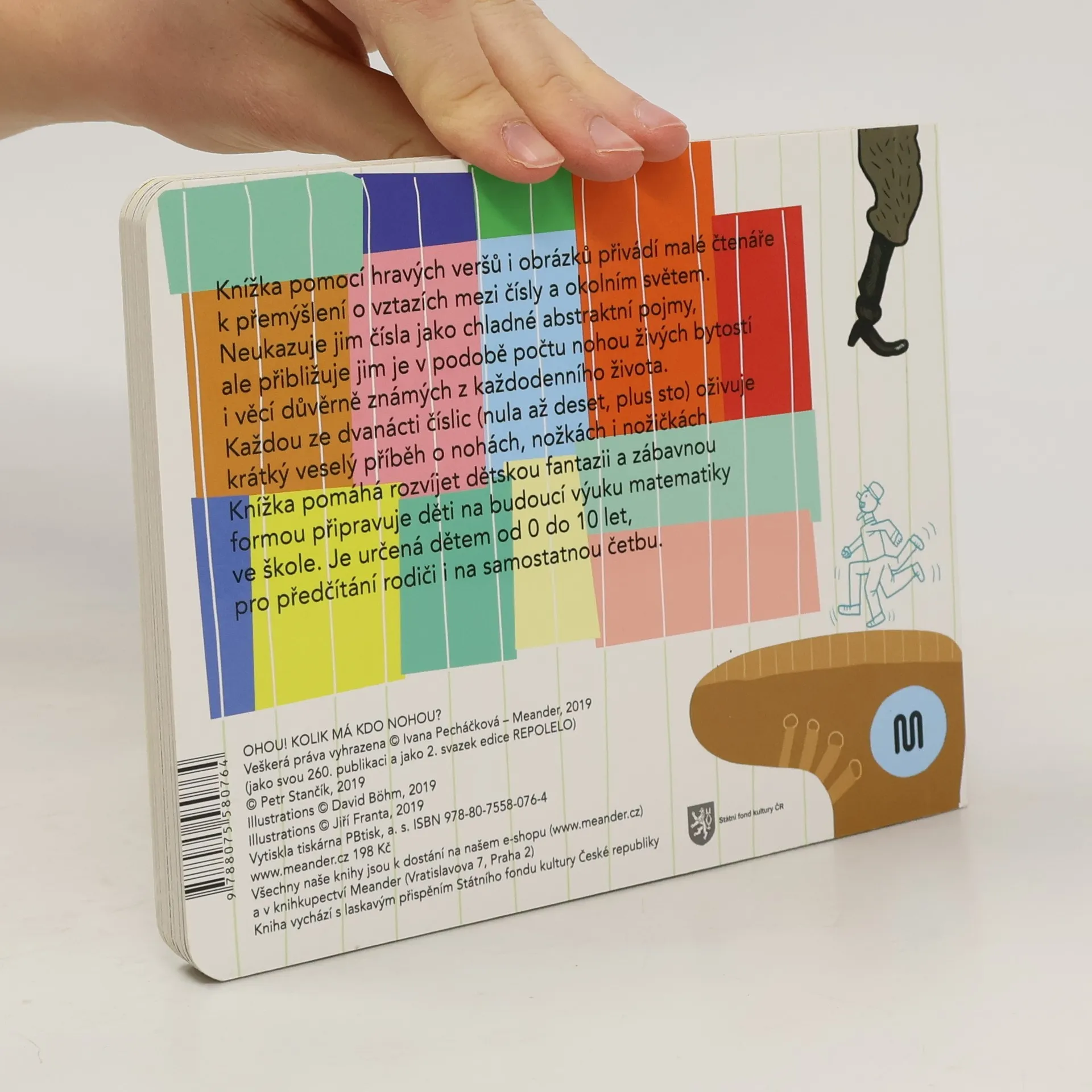 Knížka pomocí hravých veršů i obrázků přivádí malé čtenáře k přemýšlení o vztazích mezi čísly a okolním světem. Neukazuje jim čísla jako chladné abstraktní pojmy, ale přibližuje jim je v podobě počtu nohou živých bytostí i věcí důvěrně známých z každodenního života. Každou ze dvanácti číslic (nula až deset, plus sto) oživuje krátký veselý příběh o nohách, nožkách i nožičkách. Knížka pomáhá rozvíjet dětskou fantazii a zábavnou formou připravuje děti na budoucí výuku matematiky ve škole. Je určená dětem od 0 do 10 let, pro předčítání s rodiči i na samostatnou četbu.
