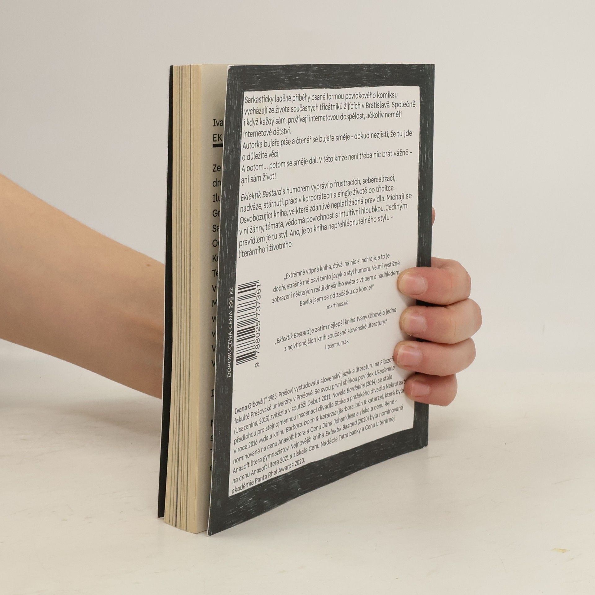 Sarkasticky laděné příběhy psané formou povídkového komiksu vycházejí ze života současných třicátníků žijících v Bratislavě. Společně, i když každý sám, prožívají internetovou dospělost, ačkoliv neměli internetové dětství. Autorka bujaře píše a čtenář se bujaře směje – dokud nezjistí, že tu jde o důležité věci. A potom… potom se směje dál. V této knize není třeba nic brát vážně – ani sám život! Eklektik Bastard s humorem vypráví o frustracích, seberealizaci, nadváze, stárnutí, práci v korporátech a single životě po třicítce. Osvobozující kniha, ve které zdánlivě neplatí žádná pravidla. Míchají se v ní žánry, témata, vědomá povrchnost s intuitivní hloubkou. Jediným pravidlem je tu styl. Ano, je to kniha nepřehlédnutelného stylu – literárního i životního. „Extrémně vtipná kniha, čtivá, na nic si nehraje, a to je dobře, strašně mě baví tento jazyk a styl humoru. Bavila jsem se od začátku do konce!“ – Martinus.sk „Eklektik Bastard je zatím nejlepší kniha Ivany Gibové a jedna z nejvtipnějších knih současné slovenské literatury.“ – litcentrum.sk