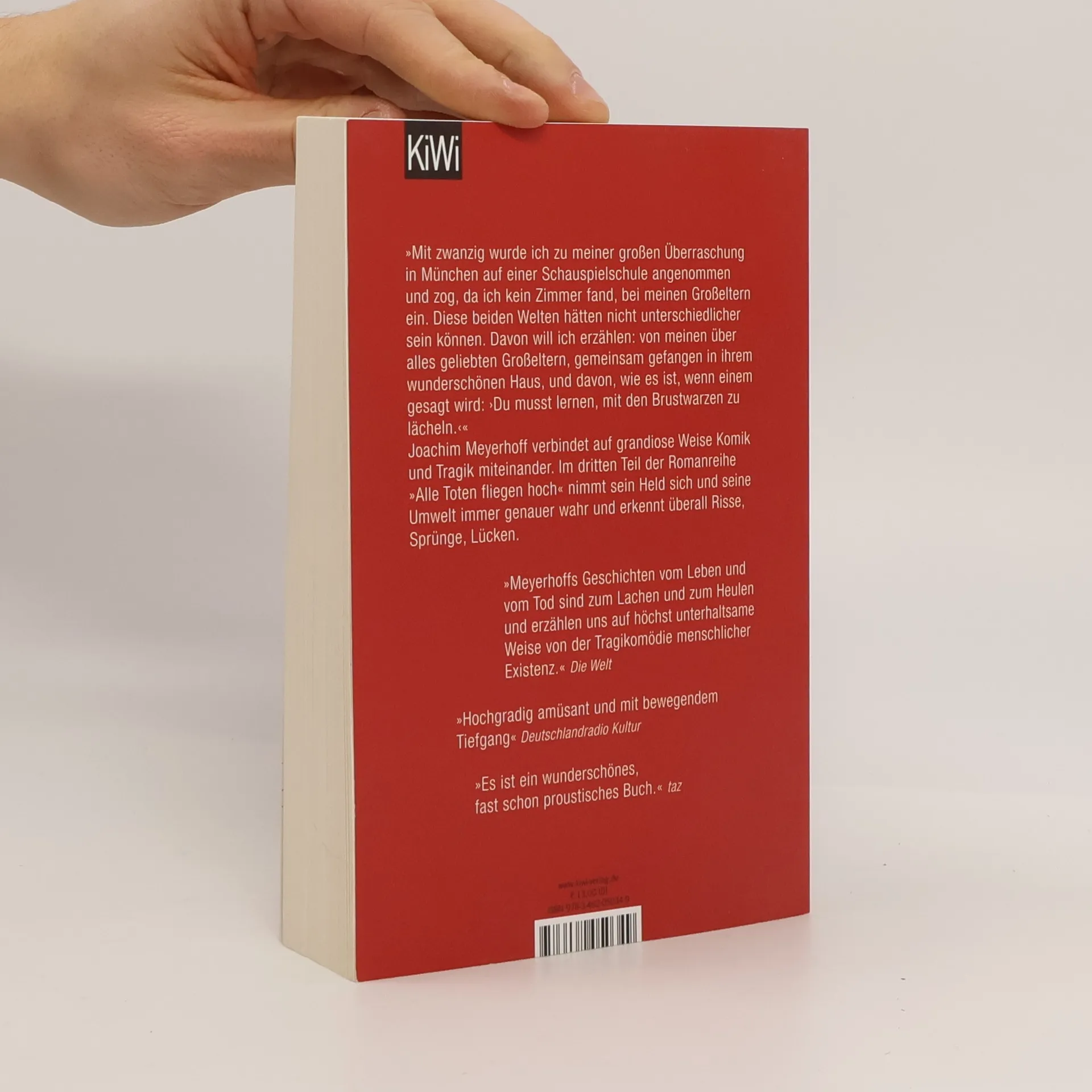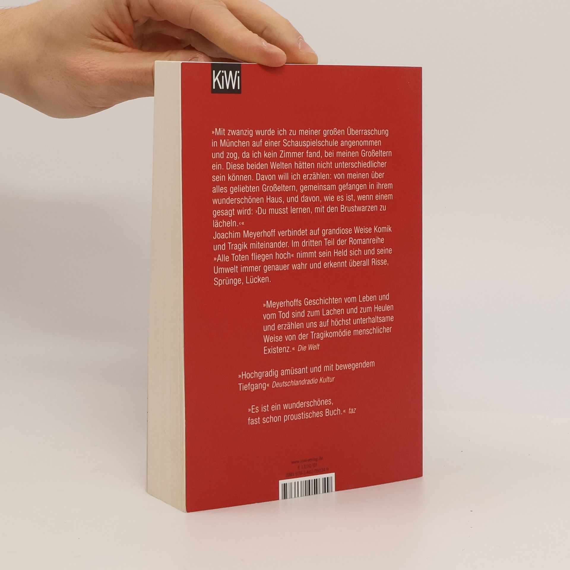 Der dritte Teil der Bestsellerserie »Alle Toten fliegen hoch« erzählt von Joachim, der nach seiner Kindheit auf dem Gelände einer Psychiatrie und einem Austauschjahr in Amerika nun an der Schauspielschule in München angenommen wird. Um seinen Zivildienst zu beginnen, zieht er zu seinen Großeltern in deren großbürgerliche Villa in Nymphenburg. Dort wird er zum Wanderer zwischen den Welten: Seine Großmutter, eine schillernde Diva und ehemalige Schauspielerin, und sein strenger Großvater, ein emeritierter Philosophieprofessor, führen ein Leben voller abenteuerlicher Rituale, in denen Alkohol eine zentrale Rolle spielt. Tagsüber wird Joachim an der Schauspielschule systematisch in seine Einzelteile zerlegt, während er abends seine Verwirrung auf dem opulenten Sofa mit Rotwein und anderen Getränken ertränkt. Der Kontrast zwischen dem Irrsinn seiner Großeltern und seinem eigenen Identitätskampf führt zu überfordernden Ereignissen. Gleichzeitig erkennt er, dass auch seine Großeltern gegen eine große Leere ankämpfen, während er auf der Bühne sein Innerstes nach außen kehren soll und oft grandios versagt. Joachim Meyerhoff verfeinert seine Kunst, Komik und Tragik zu verbinden, und sein Held wird zunehmend sensibel für die Risse und Lücken in seiner Umwelt. Ein fulminantes Lesevergnügen!