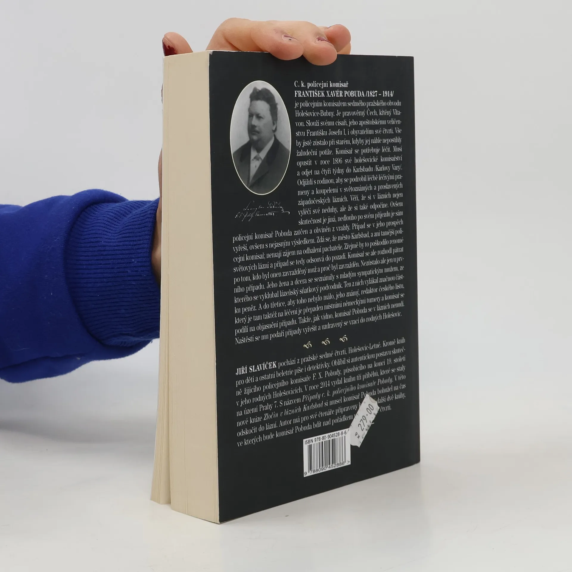 C .k. policejní komisař Franc Xaver Pobuda, který je komisařem pražského obvodu Holešovice-Bubny, se musí léčit. Musí tedy na čas opustit své komisařství a se svou rodinou přesídlit do Karlsbádu /Karlovy Vary/. Odjíždí s celou rodinou, aby se podrobil léčbě léčivými prameny a koupelemi ve světoznámých a proslavených západočeských lázních. Věří, že v lázních vyléčí své neduhy, ale že si také odpočine. Ovšem skutečnost je jiná, nedlouho po svém příjezdu je sám policejní komisař Pobuda zatčen a obviněn z vraždy. Případ se v jeho prospěch vyřeší, ovšem s nejasným výsledkem. Zdá se, že město Karlsbad, a ani tamnější policejní komisař nemá zájem na odhalení pachatele. Komisař se rozhodl pátrat po zavražděném sám. Nezůstalo však jen u prvého případu.