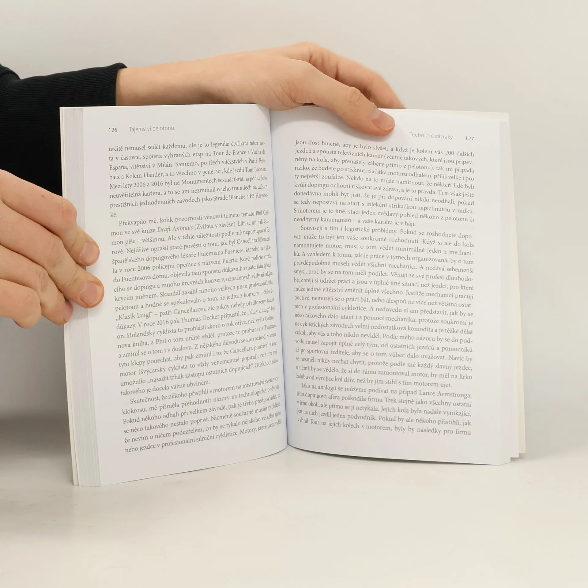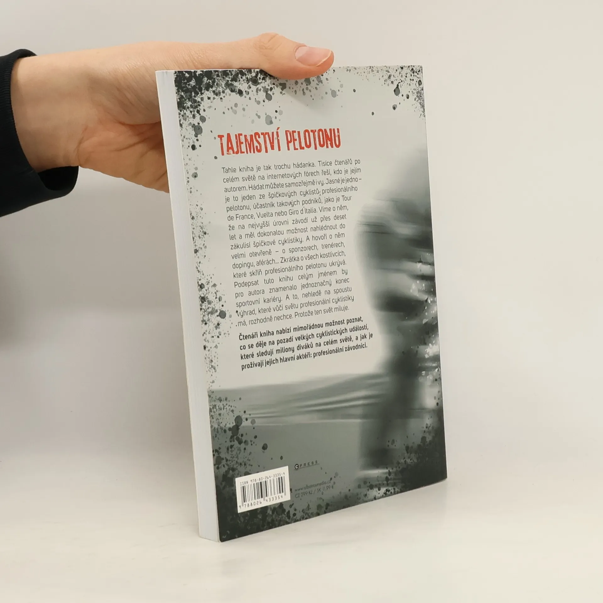 Záhadný anonym odhaluje zákulisí profesionální cyklistiky. Insider promluvil o světě profesionálních cyklistů. Tahle kniha je tak trochu hádanka. Tisíce čtenářů po celém světě na internetových fórech řeší, kdo je jejím autorem. Hádat můžete samozřejmě i vy. Jasné je jedno – je to jeden ze špičkových cyklistů profesionálního pelotonu, účastník takových podniků, jako je Tour de France, Vuelta nebo Giro d´Italia. Víme o něm, že na nejvyšší úrovni závodí už přes deset let a měl dokonalou možnost nahlédnout do zákulisí špičkové cyklistiky. A hovoří o něm velmi otevřeně – o sponzorech, trenérech, dopingu, aférách… Zkrátka o všech kostlivcích, které skříň profesionálního pelotonu ukrývá. Podepsat tuto knihu celým jménem by pro autora znamenalo jednoznačný konec sportovní kariéry. A to, nehledě na spoustu výhrad, které vůči světu profesionální cyklistiky má, rozhodně nechce. Protože ten svět miluje. Čtenáři kniha nabízí mimořádnou možnost poznat, co se děje na pozadí velkých cyklistických událostí, které sledují miliony diváků na celém světě, a jak je prožívají jejich hlavní aktéři: profesionální závodníci.