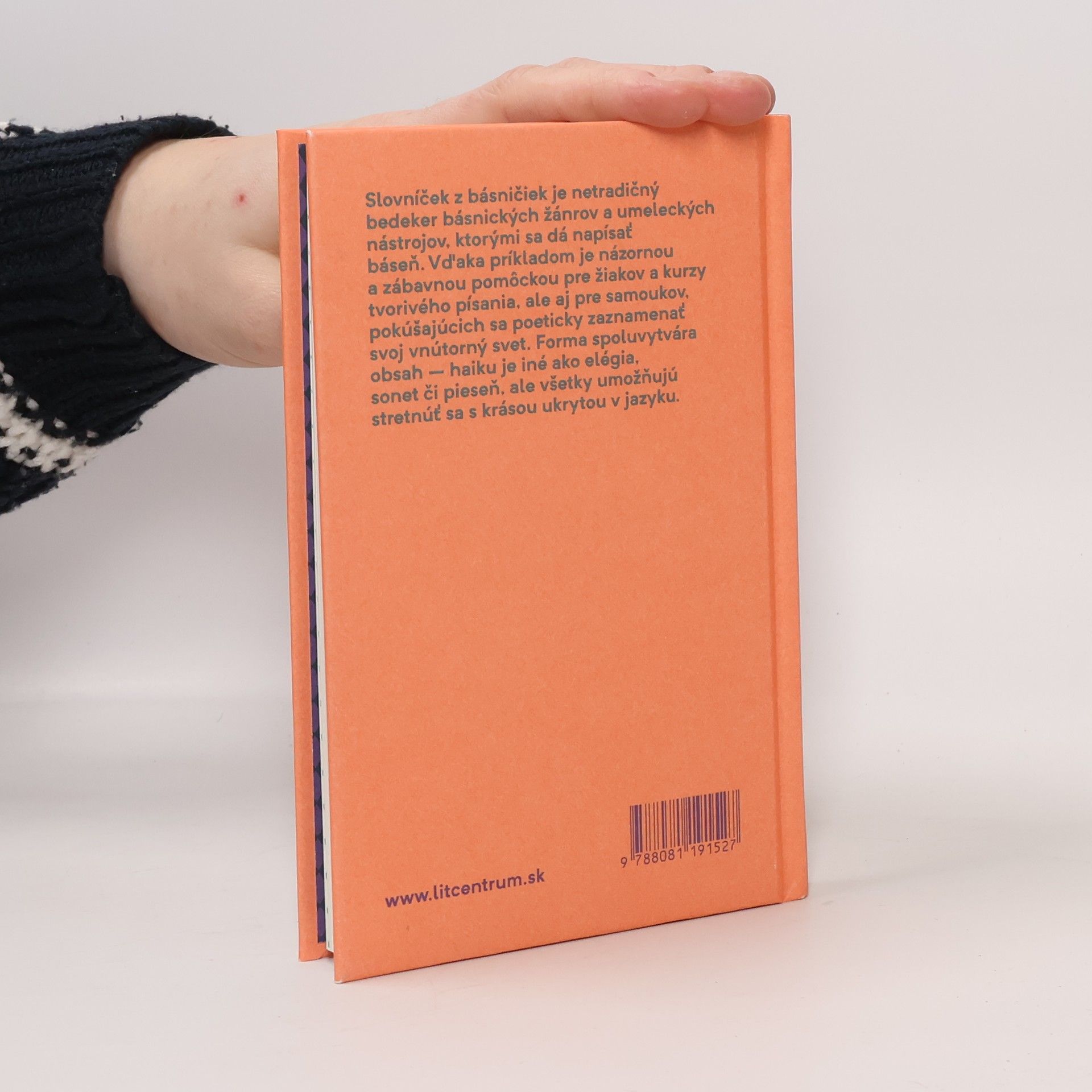 Slovníček z básničiek je netradičný bedeker básnických žánrov a umeleckých nástrojov, ktorými sa dá napísať báseň. Vďaka príkladom je názornou a zábavnou pomôckou pre žiakov a kurzy tvorivého písania, ale aj pre samoukov, pokúšajúcich sa poeticky zaznamenať svoj vnútorný svet. Forma spoluvytvára obsah – haiku je iné ako elégia, sonet či pieseň, ale všetky umožňujú stretnúť sa s krásou ukrytou v jazyku.