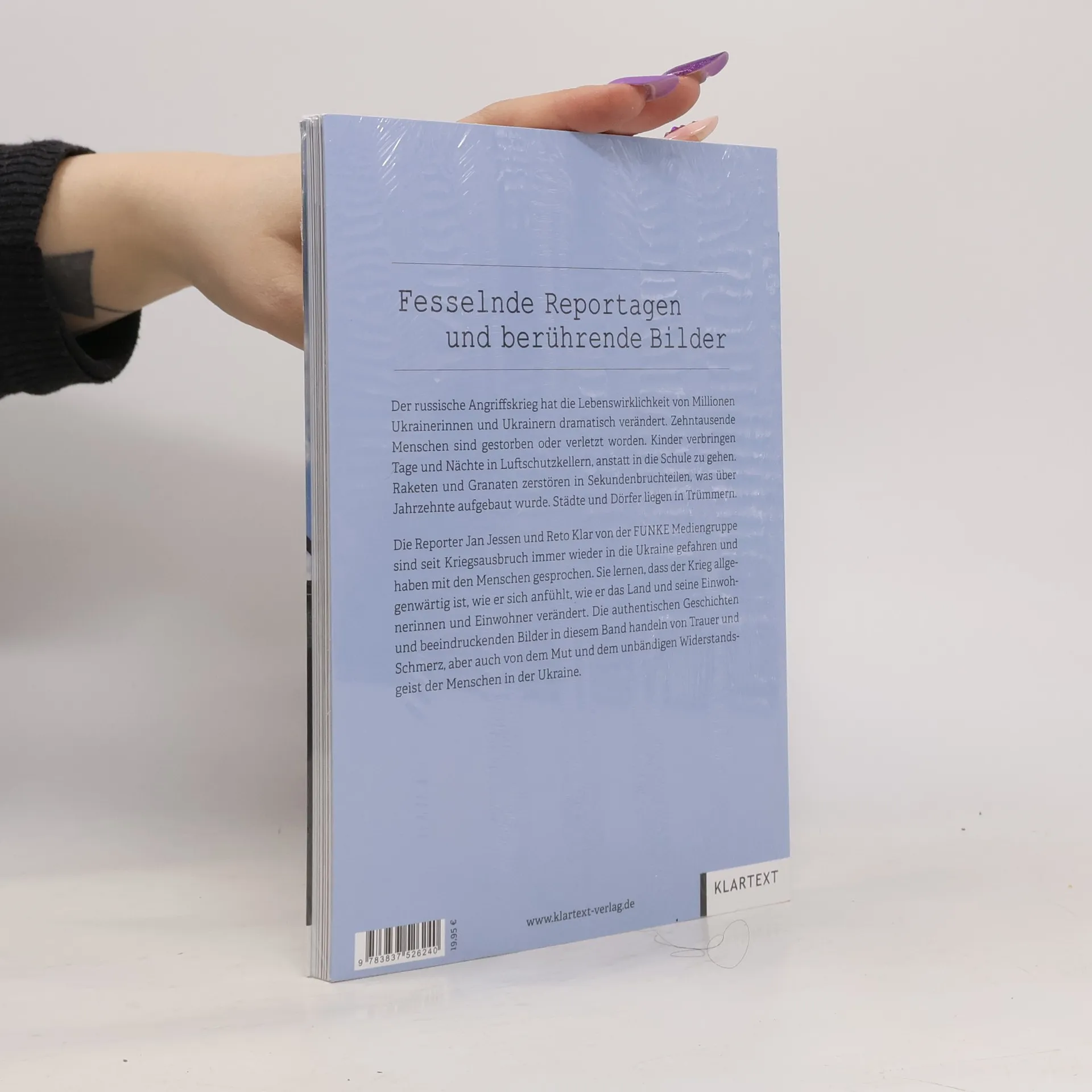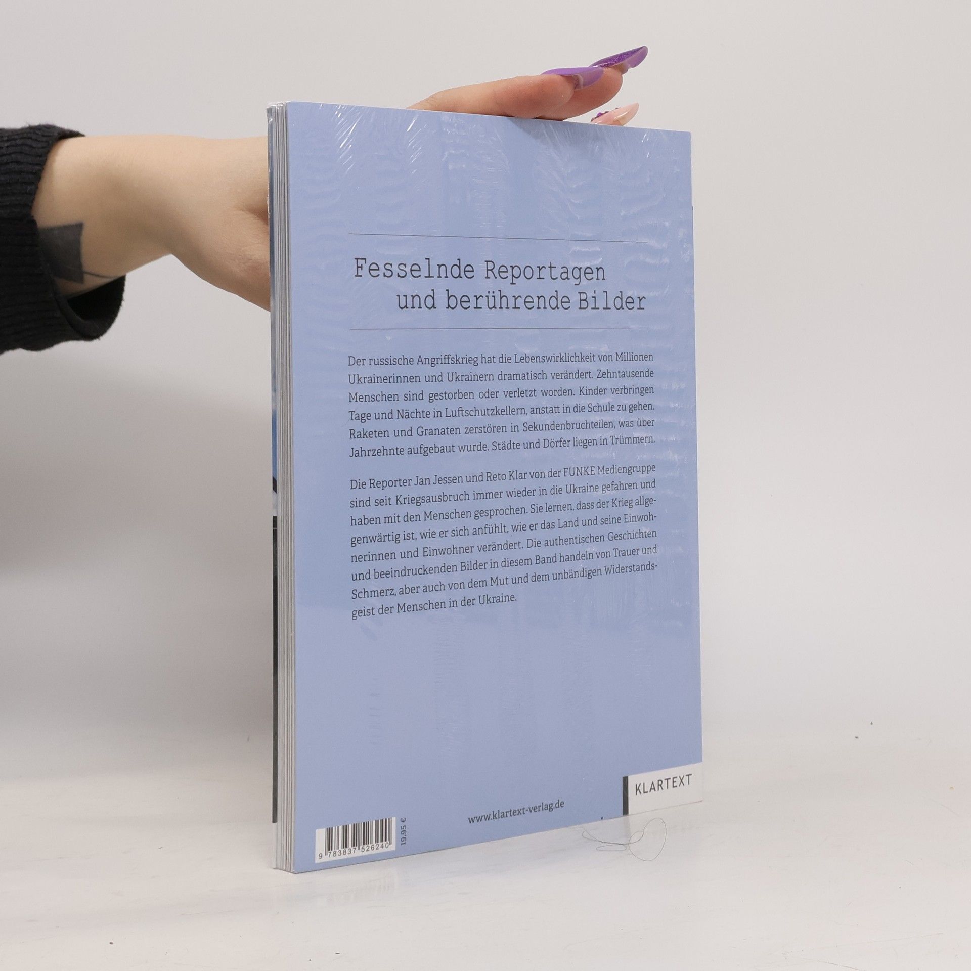 Fesselnde Reportagen und berührende Bilder. Der russische Angriffskrieg hat die Lebenswirklichkeit von Millionen Ukrainerinnen und Ukrainern dramatisch verändert. Zehntausende Menschen sind gestorben oder verletzt worden. Kinder verbringen Tage und Nächte in Luftschutzkellern, anstatt in die Schule zu gehen. Raketen und Granaten zerstören in Sekundenbruchteilen, was über Jahrzehnte aufgebaut wurde. Städte und Dörfer liegen in Trümmern. Die Reporter Jan Jessen (Texte) und Reto Klar (Fotos) von der FUNKE Mediengruppe sind seit Kriegsausbruch immer wieder in die Ukraine gefahren und haben mit den Menschen gesprochen. Sie lernen, dass der Krieg allgegenwärtig ist, wie er sich anfühlt, wie er das Land und seine Einwohnerinnen und Einwohner verändert. Die authentischen Geschichten und beeindruckenden Bilder in diesem Band handeln von Trauer und Schmerz, aber auch von dem Mut und dem unbändigen Widerstandsgeist der Menschen in der Ukraine.