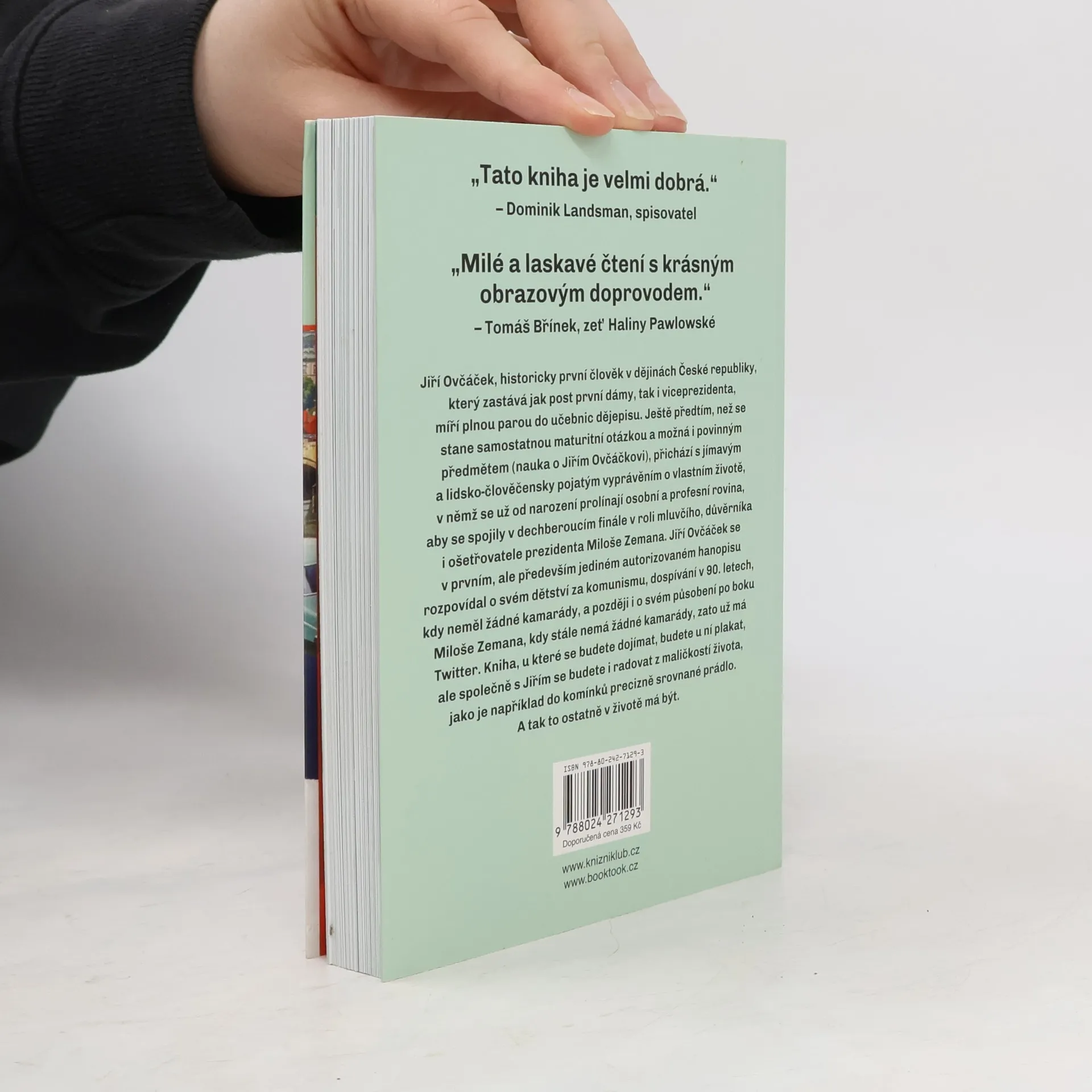 Jiří Ovčáček, historicky první člověk v dějinách České republiky, který zastává funkci jak první dámy, tak i viceprezidenta, míří plnou parou do učebnic dějepisu. Ještě předtím, než se stane samostatnou maturitní otázkou a možná i povinným předmětem (nauka o Jiřím Ovčáčkovi), přichází s jímavým a lidsko-člověčensky pojatým vyprávěním o vlastním životě, v němž se už od narození prolínají osobní a profesní rovina života, aby se spojily v dechberoucím finále v roli mluvčího, důvěrníka i ošetřovatele prezidenta Miloše Zemana. Jiří Ovčáček se v prvním a jediném autorizovaném hanopisu rozpovídal o svém dětství za komunismu, dospívání v devadesátých letech, kdy neměl žádné kamarády, a později i o svém působení po boku Miloše Zemana, kdy stále nemá žádné kamarády, zato už má Twitter. Kniha, u které se budete dojímat, budete u ní plakat, ale společně s Jiřím Ovčáčkem se budete i radovat z maličkostí života, jako je například precizně srovnané prádlo do komínků. A tak to ostatně v životě má být.