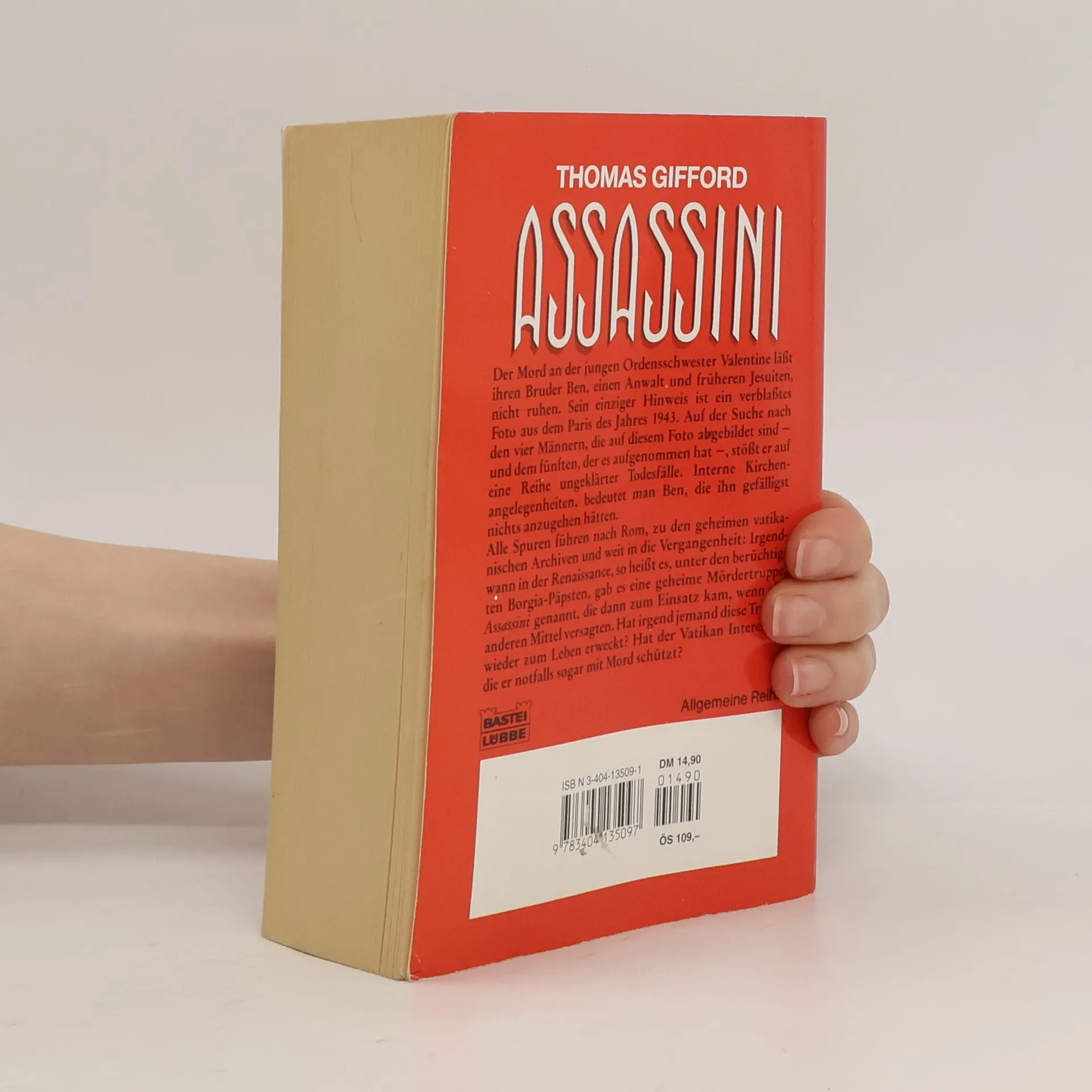 Der Mord an der jungen Ordensschwester Valentine läßt ihren Bruder Ben, einen Anwalt und früheren Jesuiten, nicht mehr ruhen. Sein einziger Hinweis ist ein verblaßtes Foto aus dem Paris des Jahres 1943. Auf der Suche nach den vier Männern, die auf dem Foto abgebildet sind - und dem fünften, der es aufgenommen hat -, stößt er auf eine Reihe unaufgeklärter Todesfälle. Interne Kirchenangelegenheiten, bedeutet man Ben, die ihn gefälligst nichts anzugehen hätten. Alle Spuren führen nach Rom, zu den geheimen vatikanischen Archiven und weit in die Vergangenheit: Irgendwann in der Renaissance, so heißt es, gab es eine geheime Mördergruppe, Assassini genannt, die dann zum Einsatz kam, wenn alle anderen Mittel versagten. Hat irgend jemand diese Truppe wieder zum Leben erweckt? Hat der Vatikan Interessen, die er notfalls sogar mit Mord schützt?
