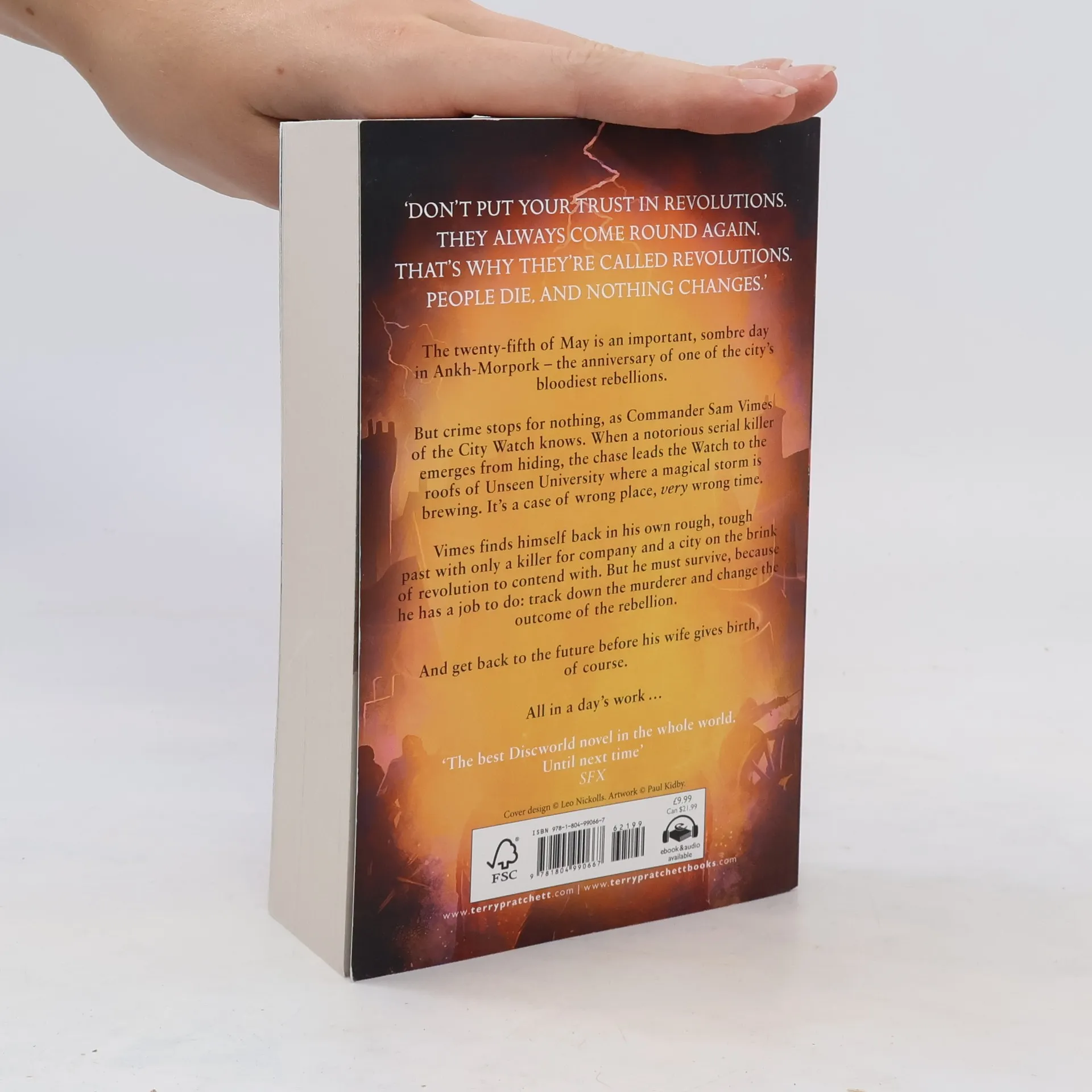 'The best Discworld book in the whole world ever. Until next time.' SFXThe Discworld is very much like our own - if our own were to consist of a flat planet balanced on the back of four elephants which stand on the back of a giant turtle, that is . . . 'Don't put your trust in revolutions. They always come round again. That's why they're called revolutions. People die, and nothing changes.'For a policeman, there can be few things worse than a serial killer loose in your city. Except, perhaps, a serial killer who targets coppers, and a city on the brink of bloody revolution.For Commander Sam Vimes, it all feels horribly familiar. Caught on the roof of a very magical building during a storm, he's found himself back in his own rough, tough past without even the clothes he was standing up in when the lightning struck. Living in the past is hard, especially when your time travel companion is a serial killer who knows where you live. But he must survive, because he has a job to do: track down the murderer and change the outcome of the rebellion.The problem is: if he wins, he's got no wife, no child, no future...