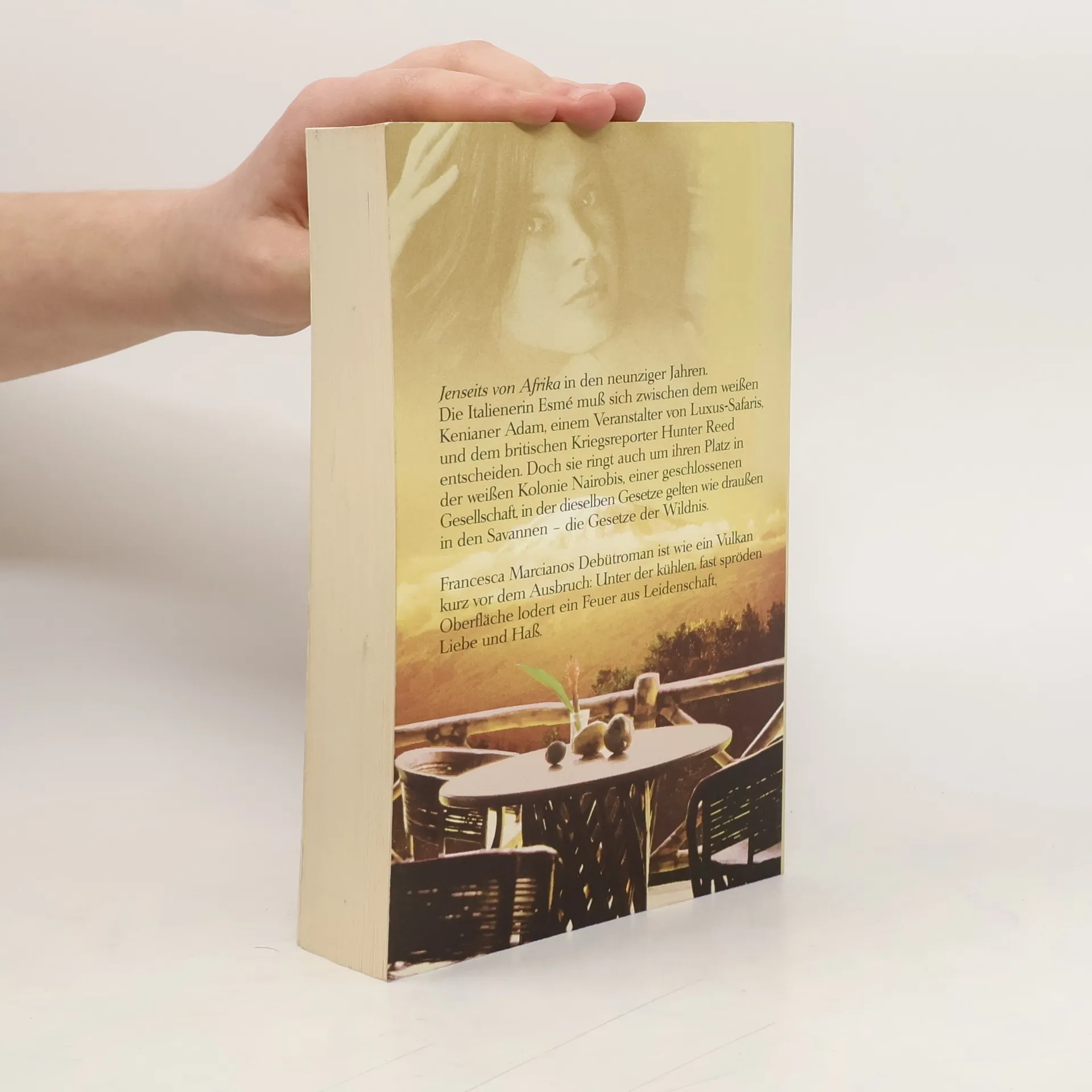 In den neunziger Jahren in Nairobi, einer geschlossenen Gesellschaft von Weißen, steht die Italienerin Esmé vor einer schwierigen Entscheidung zwischen Adam, einem Veranstalter von Luxus-Safaris, und Hunter Reed, einem britischen Kriegsreporter. Esmés Platz in dieser Kolonie ist ebenso fragil wie die Gesetze der Wildnis, die auch hier gelten. Francesca Marcianos Debüt erzählt von einer modernen, leidenschaftlichen Frau und einem Kontinent, der sowohl Schönheit als auch Grausamkeit birgt. Die Weißen in Nairobi, aus verschiedenen Ländern stammend, leben in einer engen Gemeinschaft, treffen sich regelmäßig und teilen nicht nur Bücher, sondern auch Liebhaber. Esmés Schmerz über den Tod ihres Vaters, eines gefeierten Dichters, führte sie vor Jahren nach Kenia, wo sie aus Liebe zu Afrika und zu Adam geblieben ist. Im Gegensatz dazu kennt Hunter Reed ein anderes Afrika, geprägt von Hunger und Elend. Als seltener Gast auf den Dinnerpartys der Kolonie trifft er auf Esmé. Ihre Affäre, leidenschaftlich und geheim, wird von Hunters zynischer Sicht auf die Welt und den schrecklichen Erlebnissen in den Flüchtlingslagern Ruandas überschattet.