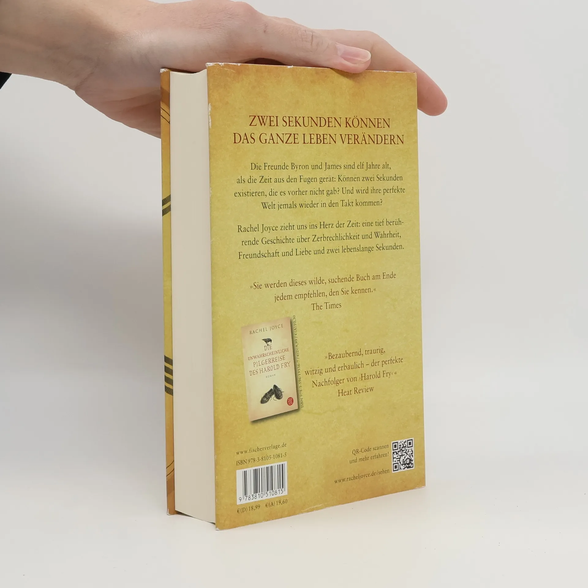 ZWEI SEKUNDEN KÖNNEN DAS GANZE LEBEN VERÄNDERNDer große neue Roman der preisgekrönten Autorin des Bestsellers ›Die unwahrscheinliche Pilgerreise des Harold Fry‹. Niemand hat das Mädchen mit dem roten Fahrrad gesehen. Nur der elfjährige Byron, der mit seiner Mutter im Wagen sitzt, als der Unfall im dichten Nebel geschieht. Byron weiß sofort: Er darf keinem etwas davon erzählen. Doch in nur zwei Sekunden ist die ganze Welt aus den Fugen geraten – und es wird mehr als ein halbes Leben dauern, bis sie wieder in den Takt kommt. Mit ihrer zarten, glasklaren Sprache zieht uns Rachel Joyce ins Herz der Zeit und erzählt von einem ewigen Sommer, vierzig kurzen Jahren und zwei lebenslangen Sekunden. Ein berührender Roman über Zeit und Wahrheit, Zerbrechlichkeit und Hoffnung, Freundschaft und Liebe.»Sie werden dieses wilde, suchende Buch am Ende jedem empfehlen, den Sie kennen.« The Times»Ein beinah vollkommener Roman emotionaler Wahrheit.« Evening Standard»Die Kraft von Joyce’ Prosa liegt in ihren subtilen, hellwachen Beobachtungen. Der Roman hat eine starke und hypnotische Wirkung – zart und fesselnd zugleich.« Sunday Times»Bezaubernd, traurig, witzig und erbaulich – der perfekte Nachfolger von ›Harold Fry‹.« Heat Review