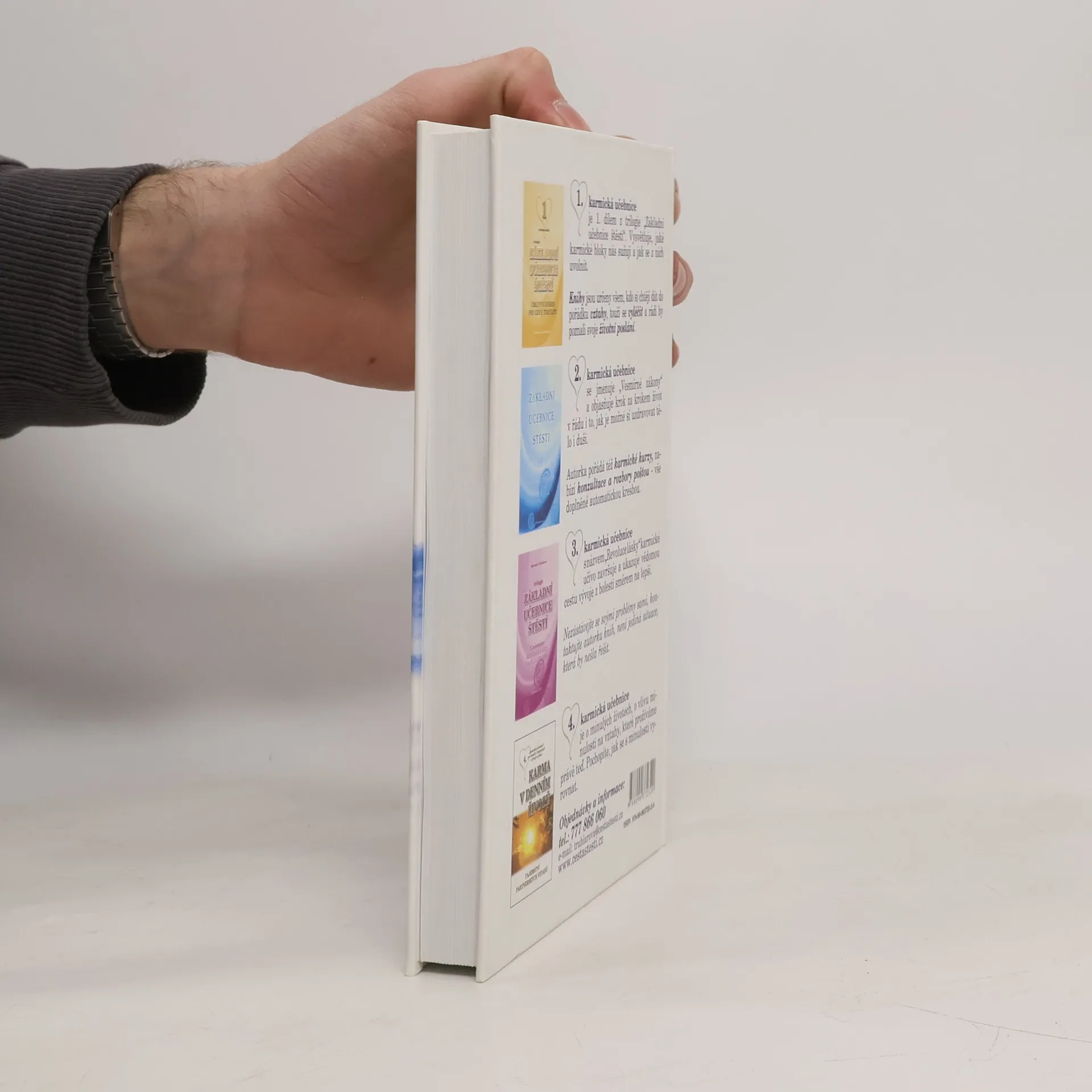Kniha Léčení příčin nemocí - Tajemství karmického uzdravování navazuje na problematiku vztahů, minulých životů a řeší to, co nás všechny pálí: naše nemoci. Jak být zdravými lidmi, co pro to potřebujeme udělat, aby se nám dařilo si zdraví upevnit? Jak se vyléčit z opakujících se (chronických) nemocí, které medicína léčit neumí a nás dokola trápí? Jaká je souvislost mezi vztahy a nemocemi? A jak je to s minulými životy, nezačíná nemoc právě tam? Na tyto a další otázky najdete v této ojedinělé knize odpovědi. Kniha Léčení příčin nemocí je 5. karmická učebnice o tvůrčí síle myšlenky - o zákonitostech, které vedou člověka ke zdraví. Předchází jí kniha Karma v denním životě a trilogie Základní učebnice štěstí. Karma v denním životě, 4. karmická učebnice, je o minulých životech, o vlivu minulosti na vztahy, které prožíváme právě teď. Pochopíte, jak se s minulostí vyrovnat. 1. dílem trilogie Základní učebnice štěstí je 1. karmická učebnice nazvaná Úmluvy s bohem pro lidi 3. tisíciletí a vysvětluje, jaké karmické bloky nás sužují a jak se z nich uvolnit. 2. karmická učebnice se jmenuje Vesmírné zákony a objasňuje krok za krokem život v řádu i to, jak je možné si uzdravovat tělo i duši. 3. karmická učebnice s názvem Revoluce lásky karmické učivo završuje a ukazuje vědomou cestu vývoje z bolesti směrem na lepší.
