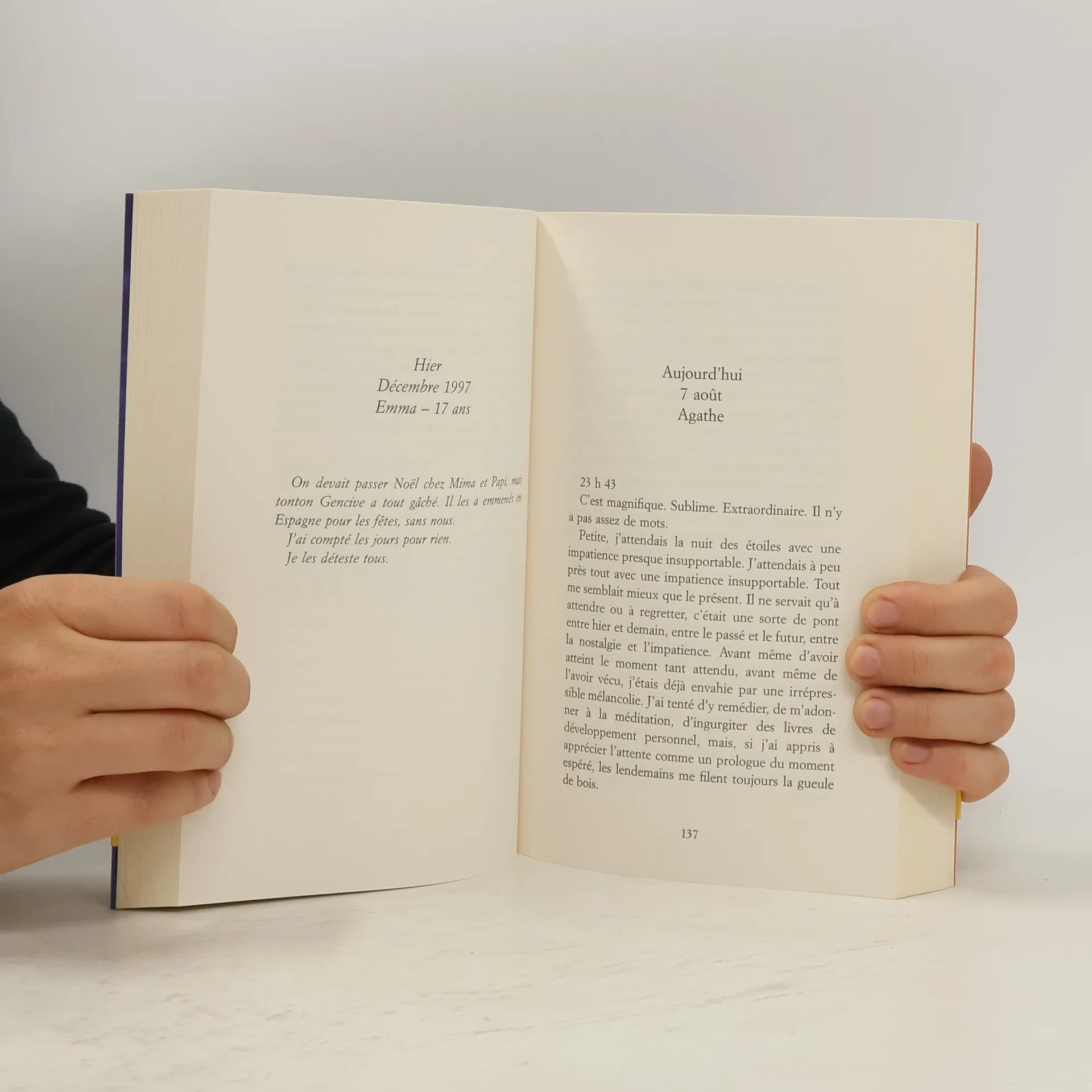 Emma et Agathe Delorme sont sœurs. Elles ont grandi l'une contre l'autre, mais sont pourtant très différentes. Agathe, la plus jeune, bordélique et ardente, a toujours pris toute la place dans le bain, dans la chambre et dans le cœur d'Emma. Après cinq ans d'un silence inexpliqué, Emma donne rendez-vous à Agathe dans la maison de vacances : Mima, leur grand-mère adorée, n'est plus, il faut vider les lieux et faire le tri dans les souvenirs. Les sœurs Delorme ont une semaine pour tout se dire et rattraper le manque de l'autre. Parviendront-elles à réparer le passé ?Dans la beauté de cet été au Pays basque, où leur enfance cogne à la porte, résonne la force de leur histoire. Entre rires et larmes, un roman bouleversant et irrésistible.
