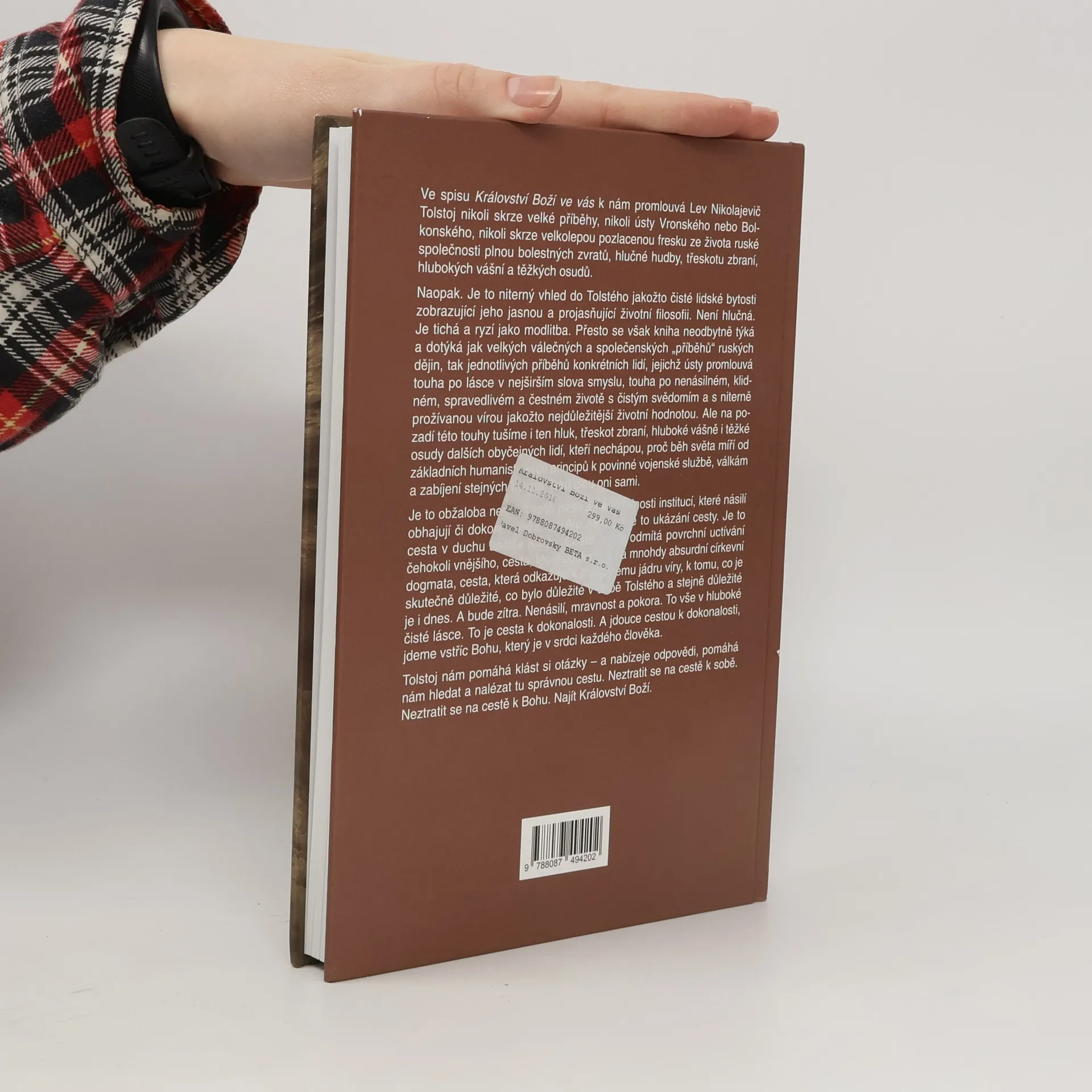 Kniha Království Boží ve vás náleží do spirituální linie Tolstého tvorby, která nabrala sílu a svébytný tón až v posledních dvaceti letech jeho života. Avšak o to vyzráleji a myšlenkově působivěji vyznívá. Vzdálen hluku ruských velkoměst – jak skutečným životem, tak uvažováním – představuje zde Tolstoj své nejniternější přesvědčení a životní filozofii. Promlouvá z ní především touha po lásce v nejširším slova smyslu, touha po nenásilném, klidném, spravedlivém a čestném životě s čistým svědomím a s niterně prožívanou vírou jakožto nejdůležitější životní hodnotou. Ozývá se zde zároveň jednak údiv nad nesmyslným směřováním světa od základních humanistických principů k povinné vojenské službě, válkám a zabíjení lidí, jednak také obžaloba násilí a institucí, které násilí obhajují či dokonce vyžadují. Ale zároveň je tato kniha ukázáním cesty. Cesty v duchu Ježíše Krista. Tato cesta odmítá povrchní uctívání čehokoli vnějšího, poukazuje na mnohdy absurdní církevní dogmata a odkazuje k samotnému jádru víry, k tomu, co je skutečně důležité, co bylo důležité v době Tolstého a stejně důležité je i dnes. Nenásilí, mravnost a pokora. To vše v hluboké čisté lásce. Kniha je výborem z díla podle posledního českého vydání z roku 1925 v překladu Karla Štěpánka, Josefa Bečky a Karla Velemínského.