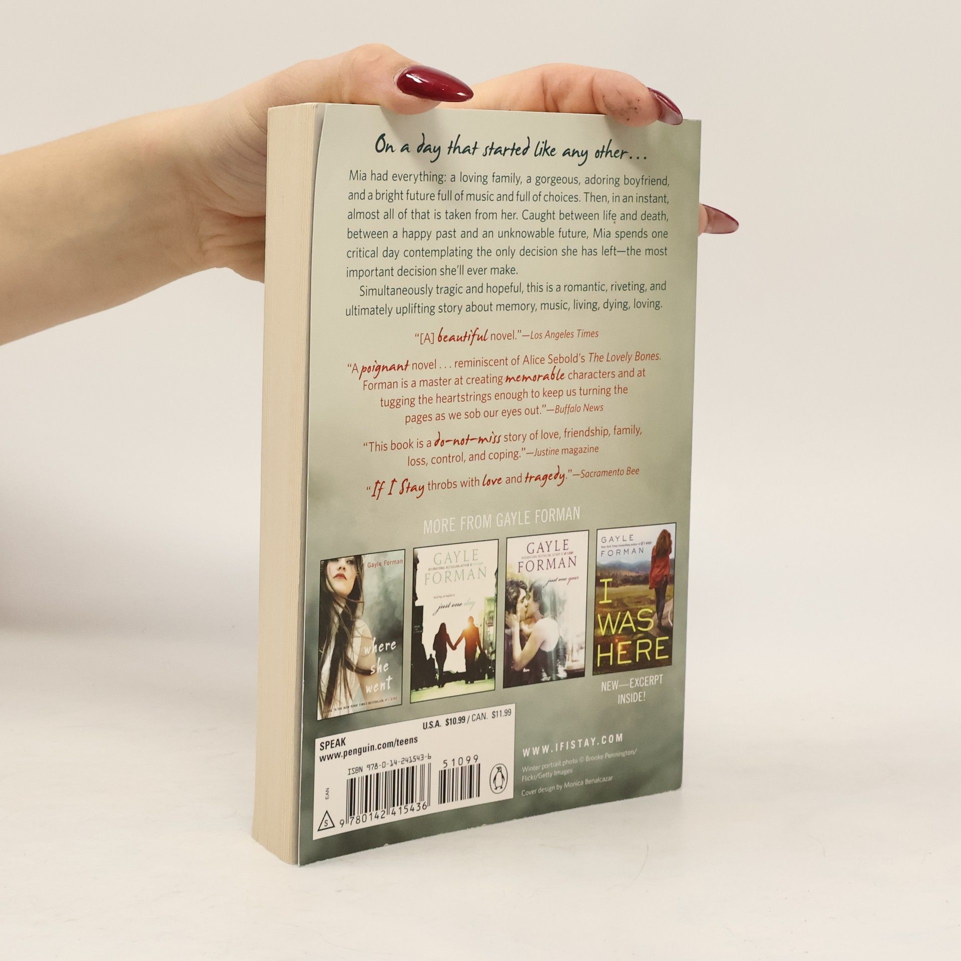 The critically acclaimed, bestselling novel from Gayle Forman, author of Where She Went, Just One Day, and Just One Year. Soon to be a major motion picture, starring Chloe Moretz! In the blink of an eye everything changes. Seventeen year-old Mia has no memory of the accident; she can only recall what happened afterwards, watching her own damaged body being taken from the wreck. Little by little she struggles to put together the pieces- to figure out what she has lost, what she has left, and the very difficult choice she must make. Heartwrenchingly beautiful, this will change the way you look at life, love, and family. Now a major motion picture starring Chloe Grace Moretz, Mia's story will stay with you for a long, long time.