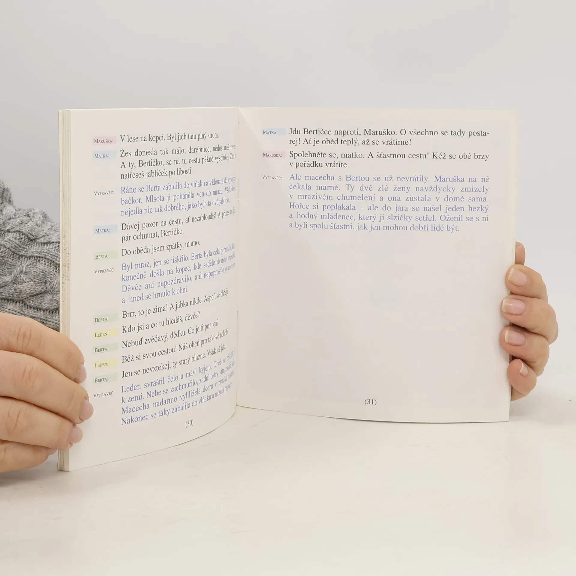 Osm známých pohádek v jednoduchých dialozích pro dramatickou improvizaci ve školách. Dramatická výchova pro žáky 2. ročníku ZŠ. Kniha obsahuje známé pohádky: Tři prasátka, Jak šlo vejce do světa, O Smolíčkovi, Červená karkulka, O dvanácti měsíčkách, O šípkové Růžence, O dvou sestrách, O princezně na hrášku.