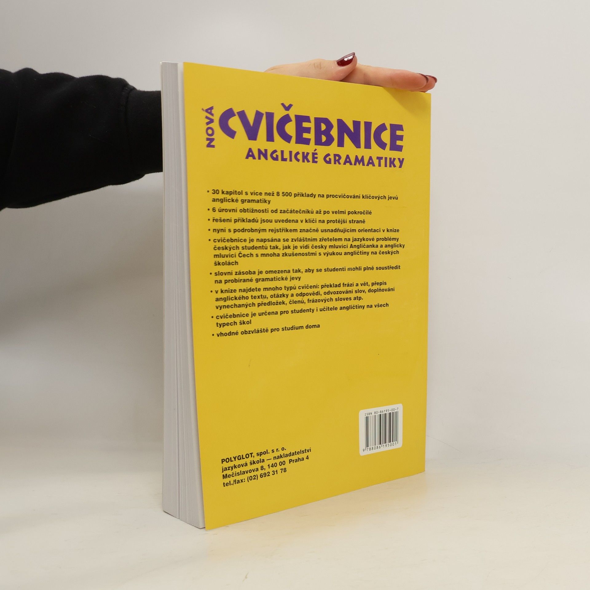 Cvičebnice je doplňkovým materiálem k jazykovým učebnicím. Neobsahuje výklad gramatiky, ale příklady k intenzivnímu procvičování gramatických a lexikálních jevů. Určena pro studenty všech úrovní, vhodná i pro samouky, neboť ke každému cvičení je na protější straně uvedeno řešení. Každá kapitola je rozdělena do několika úrovní pokročilosti. V úrovni A se procvičují jevy, s nimiž se začátečník setká zhruba v prvních měsících studia, ať už se bude učit z kterékoli učebnice. Se zvyšující se úrovní roste i lexikální náročnost cvičení. Cvičebnice svým obsahem přesahují středoškolskou úroveň. V 30 kapitolách najdete přes 8500 příkladů rozdělených do překladových a doplňovacích cvičení. Student se musí zároveň soustředit na slovní zásobu, gramatiku, slovosled, interpunkci a další aspekty jazyka. Důraz je kladen i na problémy specifické pro české studenty (časová souslednost, předložky, vazba there is / are…).... celý text