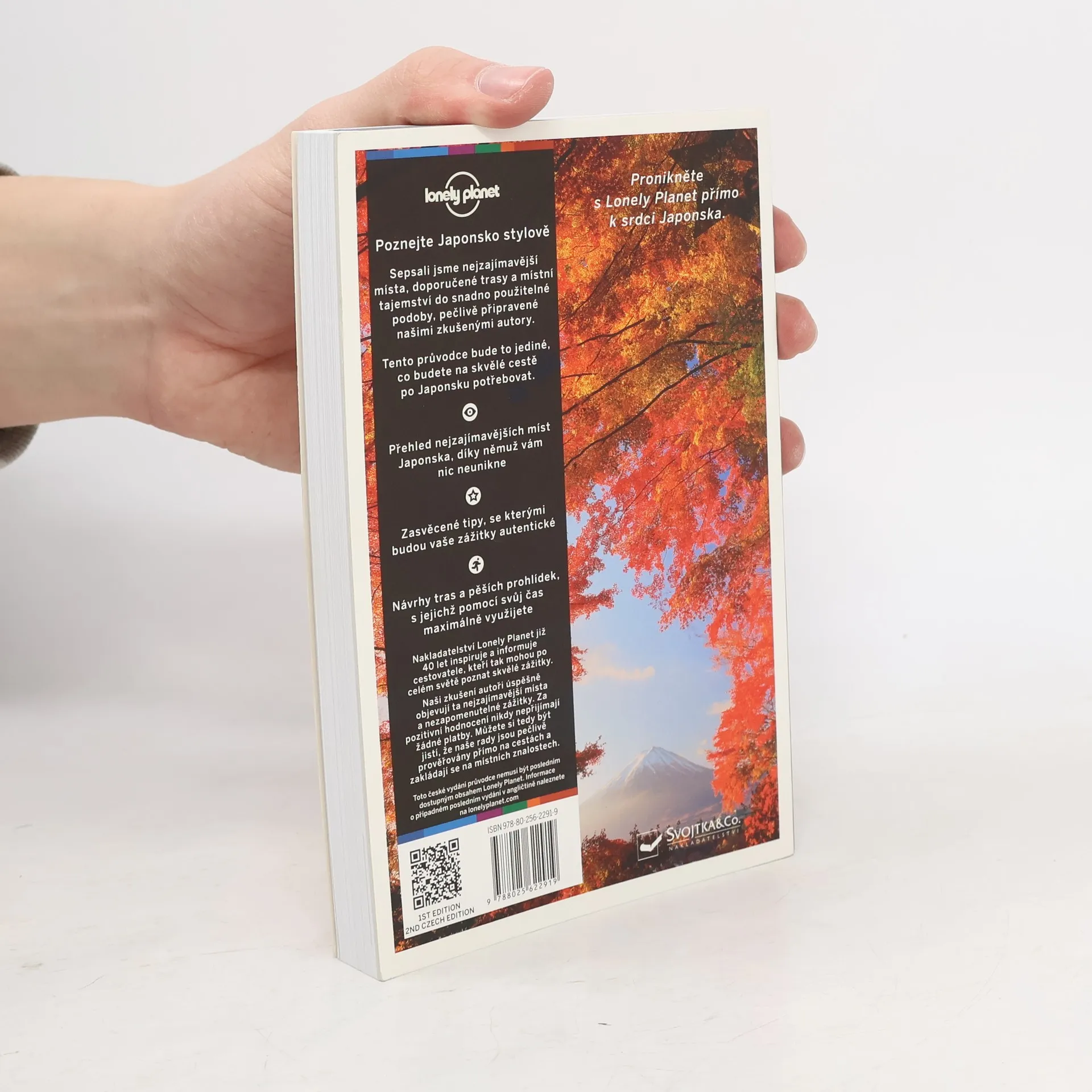 Japonsko je vskutku nadčasové. Je to místo, kde se starobylé tradice mísí s duchem moderní doby, jako by to byla ta nejpřirozenější věc na světě. Popsali jsme nejzajímavější místa, navrhované trasy a místní tajemství do snadno použitelné podoby, pečlivě připravené našimi zkušenými autory. Tento průvodce bude to jediné, co budete potřebovat na nezapomenutelnou cestu po Japonsku. Nakladatelství Lonely Planet již 40 let inspiruje a informuje cestovatele, kteří tak mohou po celém světě poznat skvělé zážitky. Naši zkušení autoři úspěšně objevují ta nejzajímavější místa a vzrušující zážitky. Za pozitivní hodnocení nikdy nepřijímají žádné platby. Můžete si tedy být jistí, že naše rady jsou pečlivě prověřovány přímo na cestě a odrážejí místní znalosti. – Zasvěcené tipy, se kterými budou vaše zážitky autentické – Návrhy tras a pěších prohlídek, s jejichž pomocí svůj čas maximálně využijete – Jeďte přímo na ta nejzajímavější místa a poznejte ty nejlepší zážitky, pečlivě vybrané našimi zkušenými autory – Poznejte zemi ještě před cestou – naše okouzlující fotografie vás vtáhnou do kultury Japonska – Cestujte snadno s našimi skládacími mapami a dopravním tipy Říkáme to tak, jak to je Našim informacím můžete věřit, protože autoři Lonely Planet osobně navštěvují místa, o nichž píšou. Nepřijímáme žádné protislužby za pozitivní hodnocení, a můžete se proto spolehnout na to, že jsme absolutně objektivní.