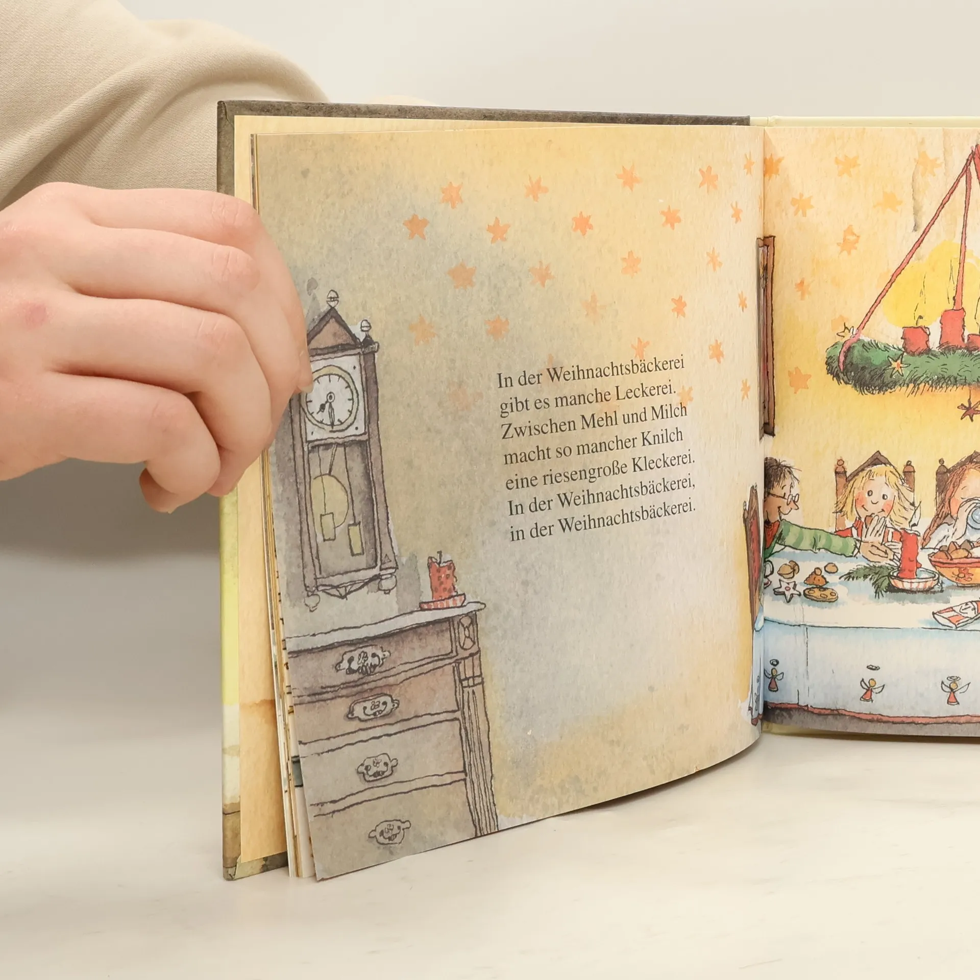 „In der Weihnachtsbäckerei gibt es manche Leckerei. Zwischen Mehl und Milch macht so mancher Knilch eine riesengroße Kleckerei …" Das bekannte Advents- und Weihnachtslied von Rolf Zuckowski, witzig und stimmungsvoll illustriert von Julia Ginsbach.