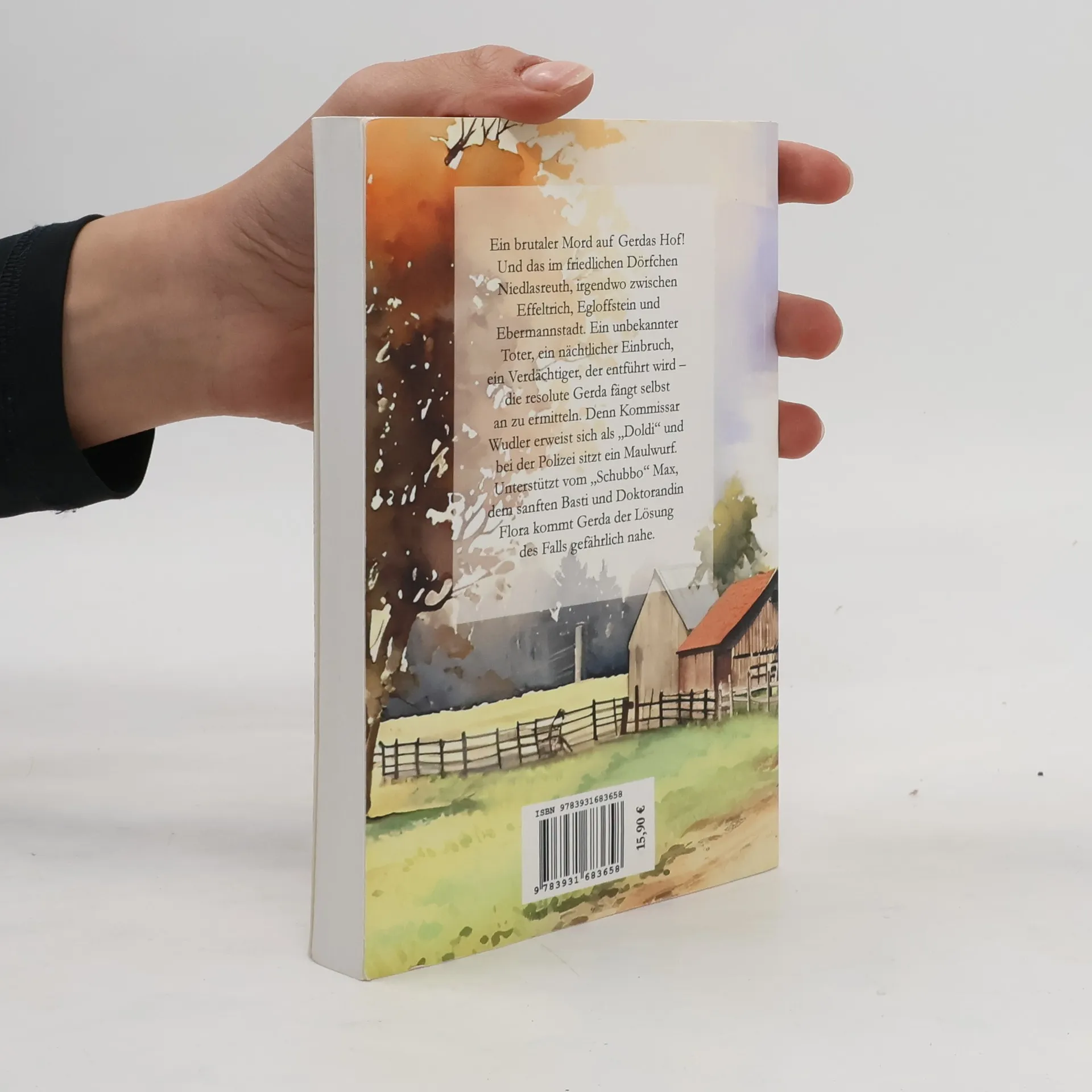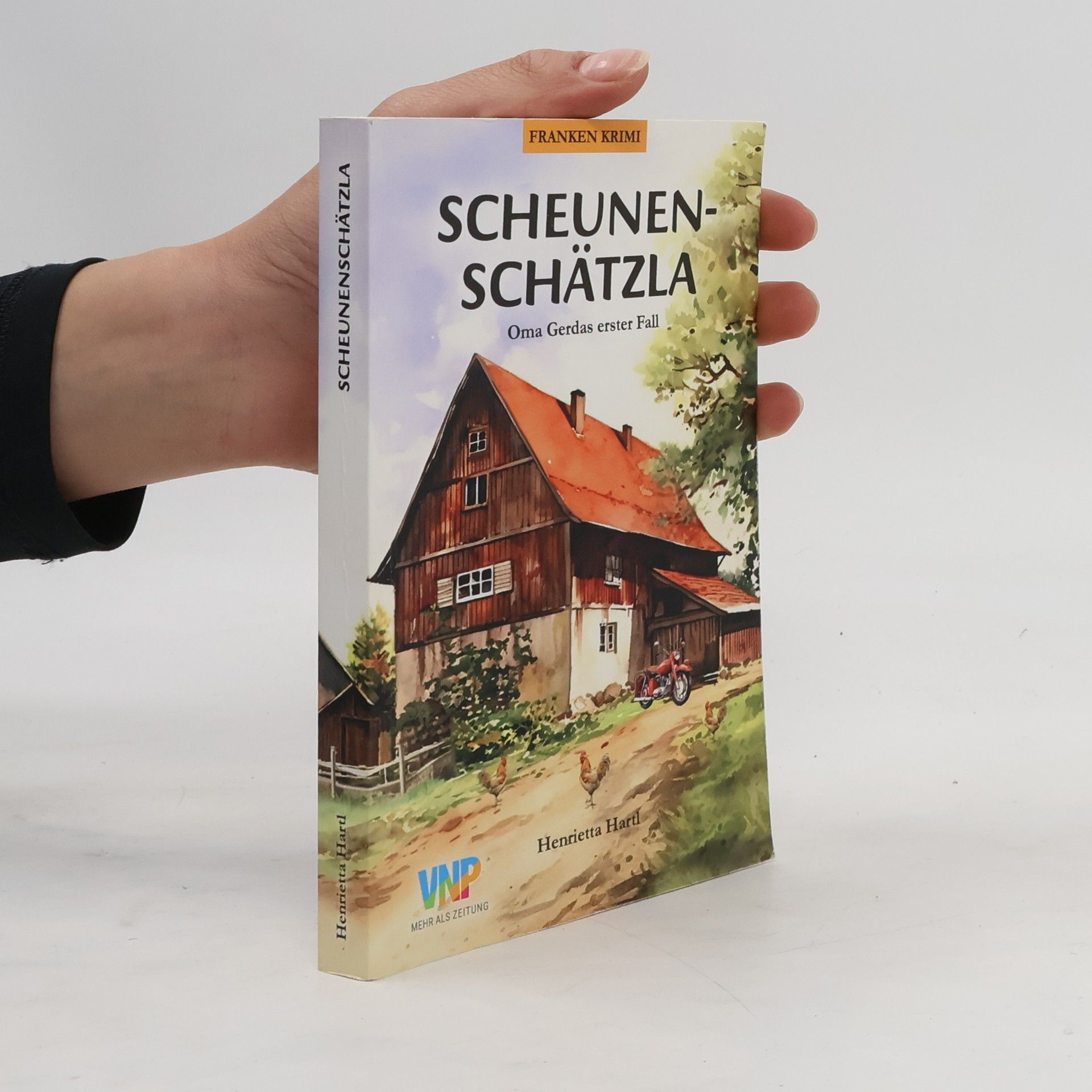 Oma Gerda ermittelt in ihrem ersten Fall! „Scheunenschätzla“ ist ein fränkischer Comedy-Krimi und da steckt auch alles drin: Fränkisch, Comedy und Krimi. Fränkisch ist der Schauplatz im fiktiven Niedlasreuth, irgendwo zwischen Effeltrich, Egloffstein und Ebermannstadt. Und Fränkisch „waaft“ auch Heldin Gerda, die zur Detektivin wird. Alle anderen reden „normales“ Deutsch, das Buch ist also auch für Nicht-Franken verständlich. Die Comedy ergibt sich aus dem nüchternen Blick der Hamburger Doktorandin Flora auf die fränkische Welt, die sie rund um Oma Gerda vorfindet: Die resolute Gerda selbst, die nie ein Blatt vor den Mund nimmt, ihr sanfter Großneffe Basti, der betuliche Polizist Max, der aufgeblasene Kommissar Wudler, der linkische Kleinganove Ralfi oder seine überbesorgte Mutter Marga. Nicht zuletzt ist das aber auch ein Krimi, es gibt rätselhafte Verbrechen, Ermittlungen und überraschende, aber logische Lösungen. Als sie einen unbekannten Toten auf ihrem Hof findet, fängt die resolute Gerda selbst an zu ermitteln. Denn Kommissar Wudler erweist sich als „Doldi“, und bei einem Einbruch auf Gerdas Hof zeigt sich: Bei der Polizei sitzt ein Maulwurf. Dann wird auch noch ein Verdächtiger entführt, der in Erlangen mit illegalen Pillen gedealt hat. Unterstützt von „Schubbo“ Max, Basti und der Hamburger Doktorandin Flora kommt Gerda der Lösung des Falls schließlich gefährlich nahe ...