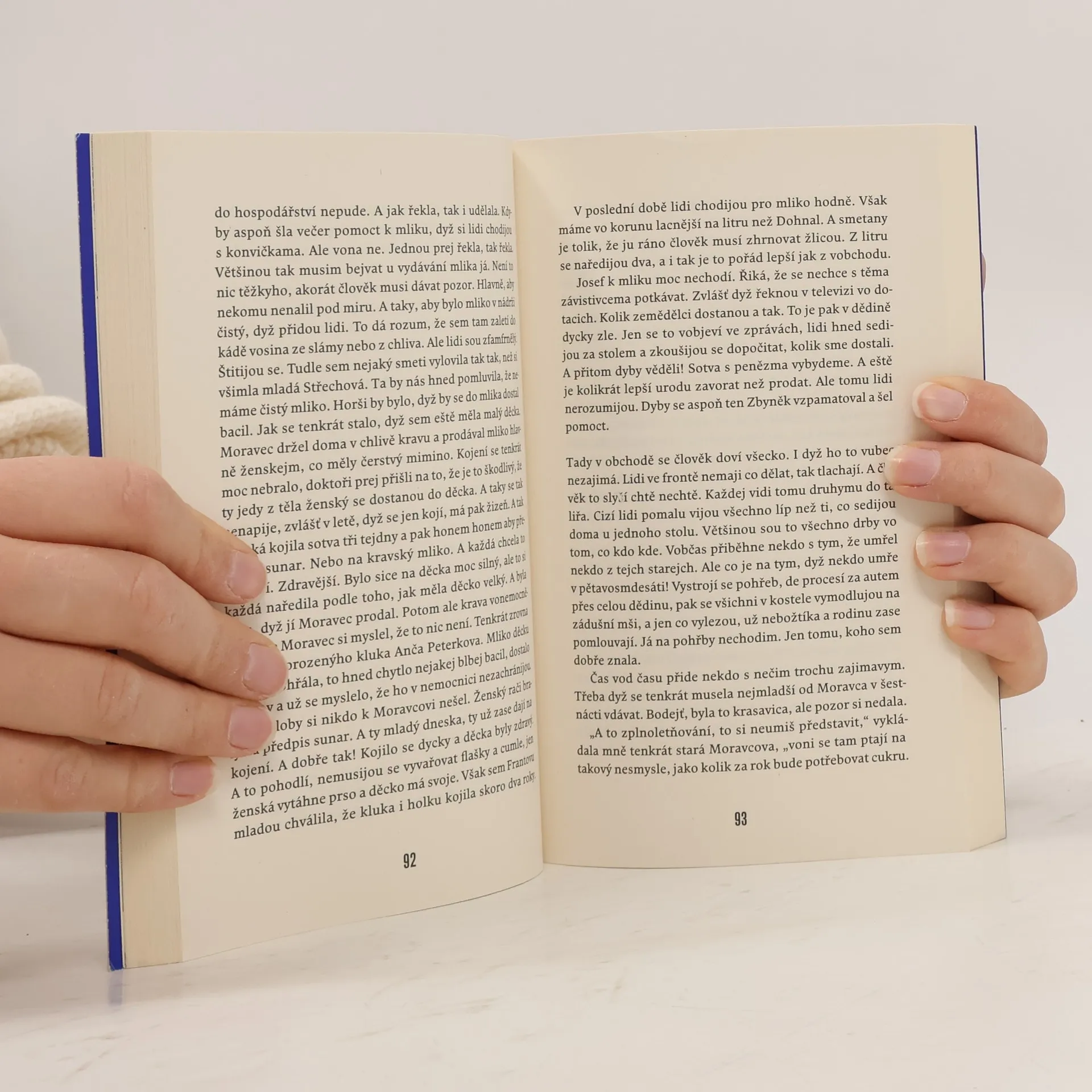 Dědina se podle autorčiných slov "nachází v mezipatrech fantazie", která jí posloužila jako prostor pro uchování jazyka dětství prožitého na Vysočině. Humorně laděné příběhy nás zavedou k moravským polím, do hospod i do front před malé prodejny. Na pozadí lehce humorného vyprávění se před čtenářem odkrývá venkovské hemžení v nepřikrášlené nahotě. Přirozená fyzická blízkost hrdinů, jejich společná práce, jejich touha po lepším živobytí až vypočítavost jsou zdrojem věčných svárů i svázanosti a také marné snahy vyléčit minulé rány. Svižné vyprávění formanovského střihu, které však není cynické; nikoho nesoudí a co je podstatné — nenudí.