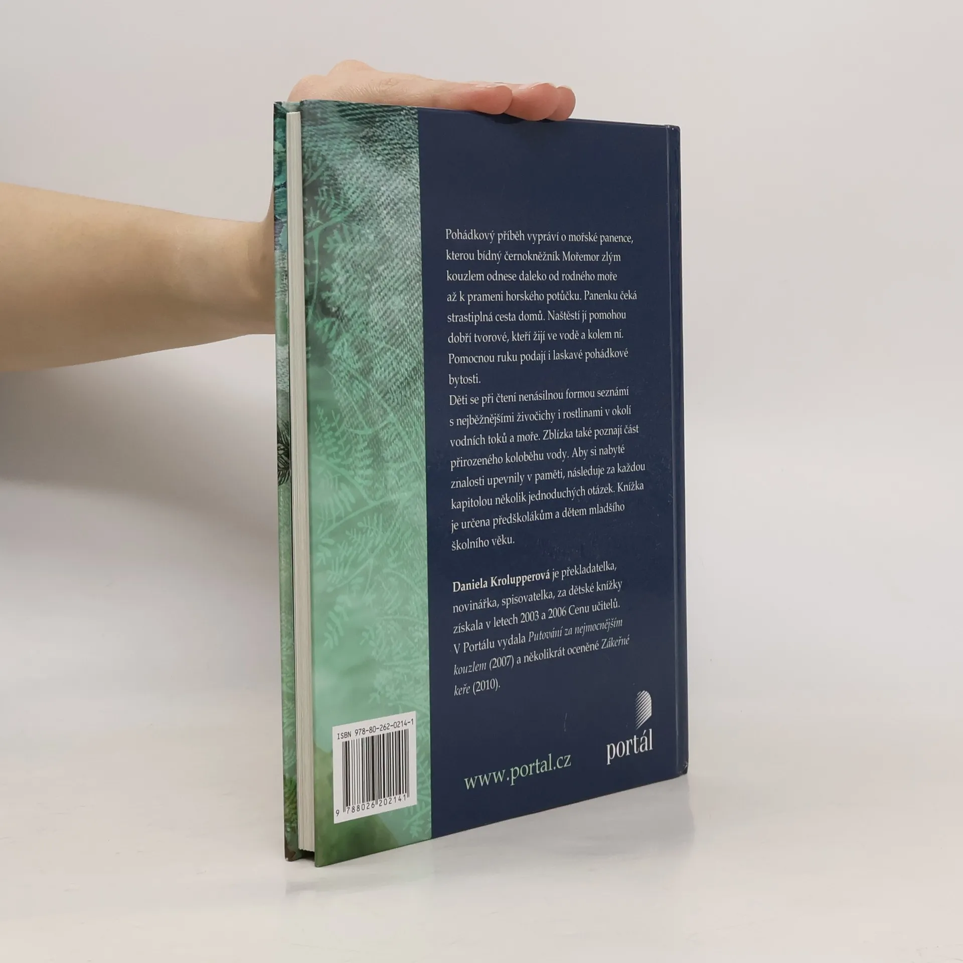 Pohádkový příběh vypráví o mořské panence, kterou bídný černokněžník Mořemor zlým kouzlem odnese daleko od rodného moře až k prameni horského potůčku. Panenku čeká strastiplná cesta domů. Naštěstí jí pomohou dobří tvorové, kteří žijí ve vodě a kolem ní. Děti se při čtení nenásilnou formou seznámí s nejběžnějšími živočichy i rostlinami v okolí vodních toků a moře, a zároveň také s koloběhem vody (horský pramínek vytvoří potok, který se vlévá do říčky, říčka do řeky a řeka do moře). Za každou kapitolou následuje několik jednoduchých otázek, aby si děti upevnily v paměti nabyté znalosti. Knížka je určena předškolákům a dětem mladšího školního věku. Daniela Daniela Krolupperová je překladatelka, novinářka, spisovatelka. Za dětské knížky získala v letech 2003 a 2006 Cenu učitelů. V Portálu vydala Putování za nejmocnějším kouzlem (2007) a několikrát oceněné Zákeřné keře (2010).