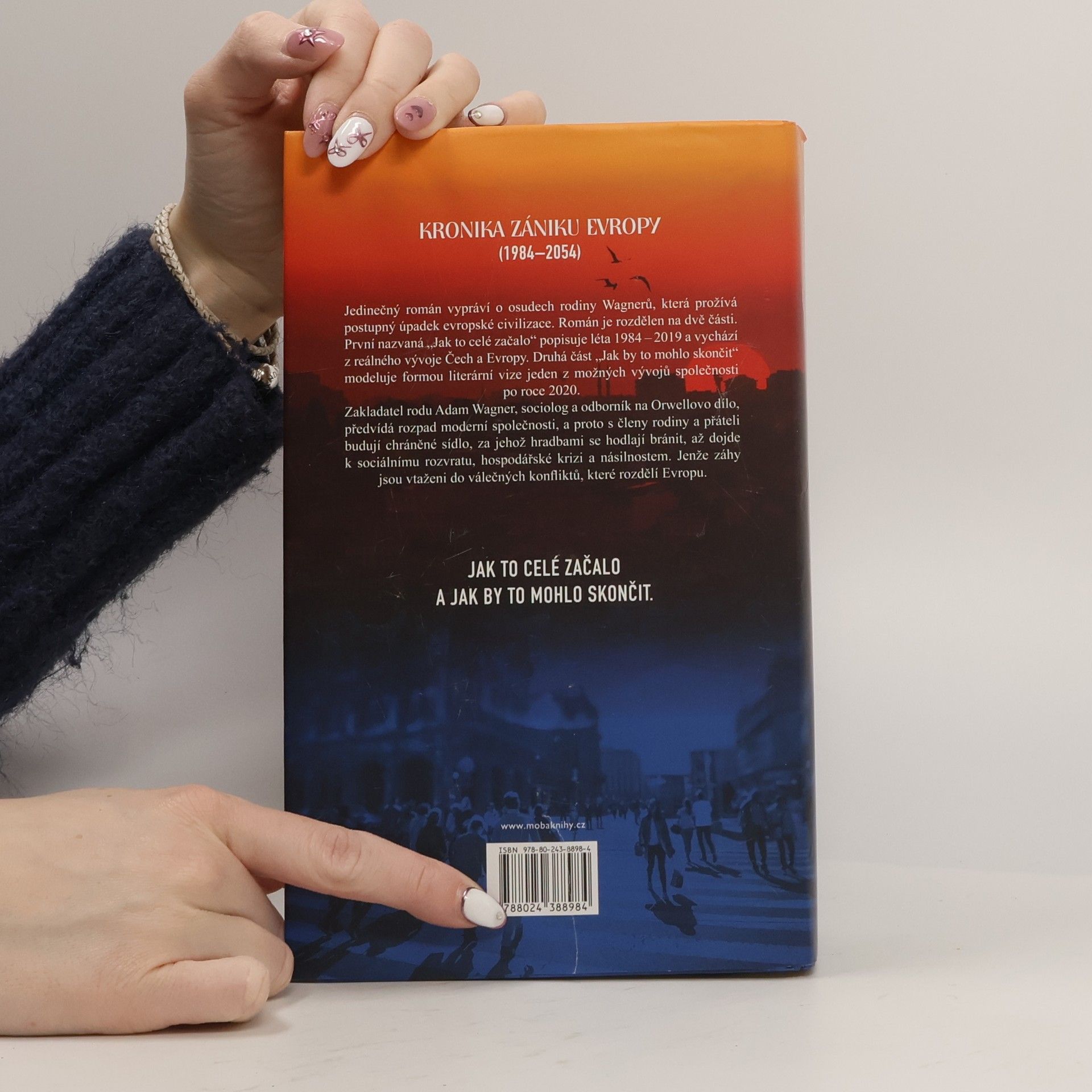 Román vypráví o osudech rodiny Wagnerů, která prožívá postupný úpadek evropské civilizace. Kniha je rozdělena na dvě části. První díl nazvaný „Jak to celé začalo“ popisuje léta 1984–2019 a vychází z reálného vývoje Čech a Evropy. Druhý díl „Jak by to celé mohlo skončit“ modeluje formou utopie jeden z možných vývojů společnosti po roce 2020, který by mohl vést až k zániku evropské civilizace. Zakladatel rodu Adam Wagner, sociolog a odborník na Orwellovo dílo, předvídá budoucí rozpad západoevropské demokracie, a proto s členy rodiny a přáteli budují malé chráněné sídlo, za jehož hradbami se hodlají bránit, až dojde k sociálnímu rozvratu, hospodářské krizi a bojům o přežití.