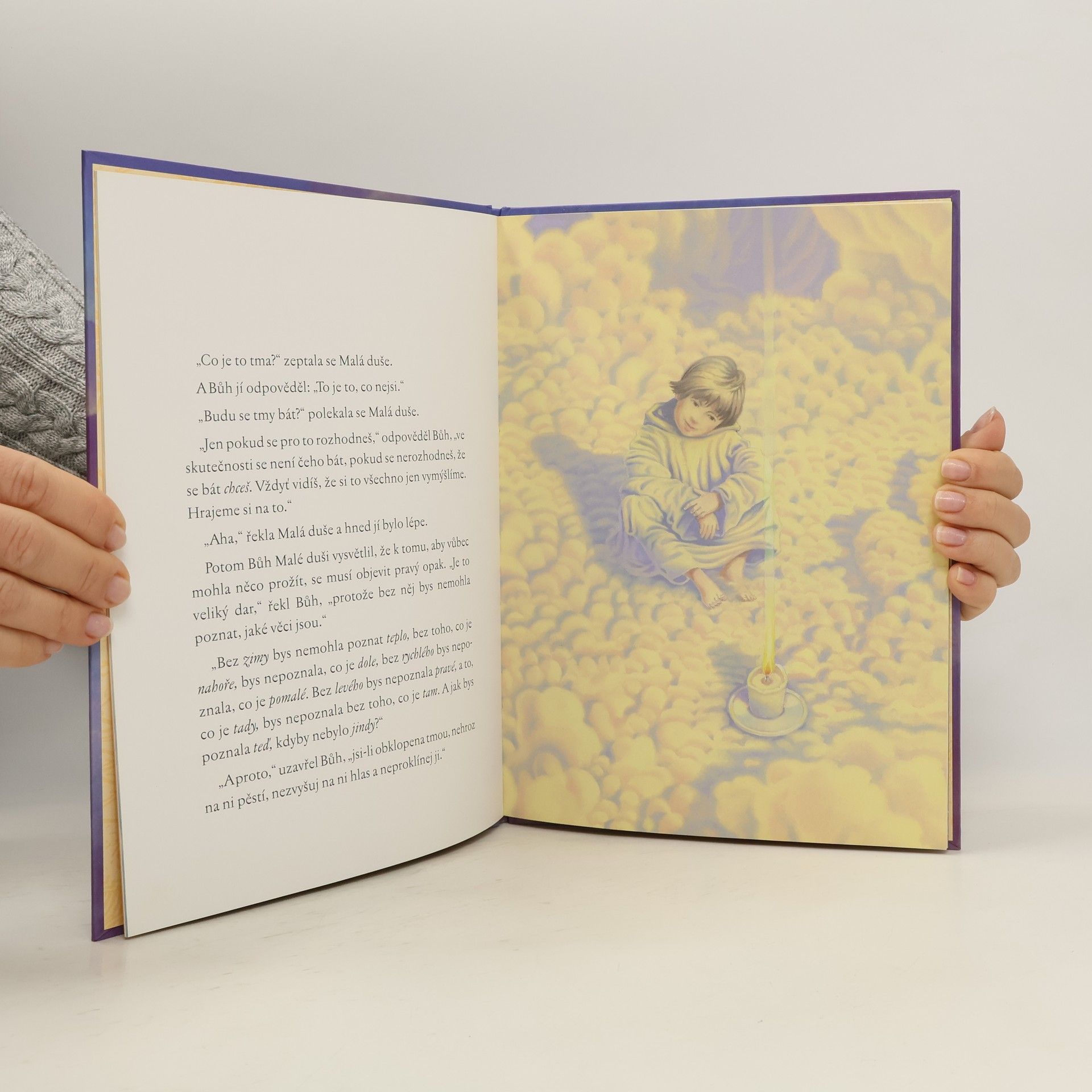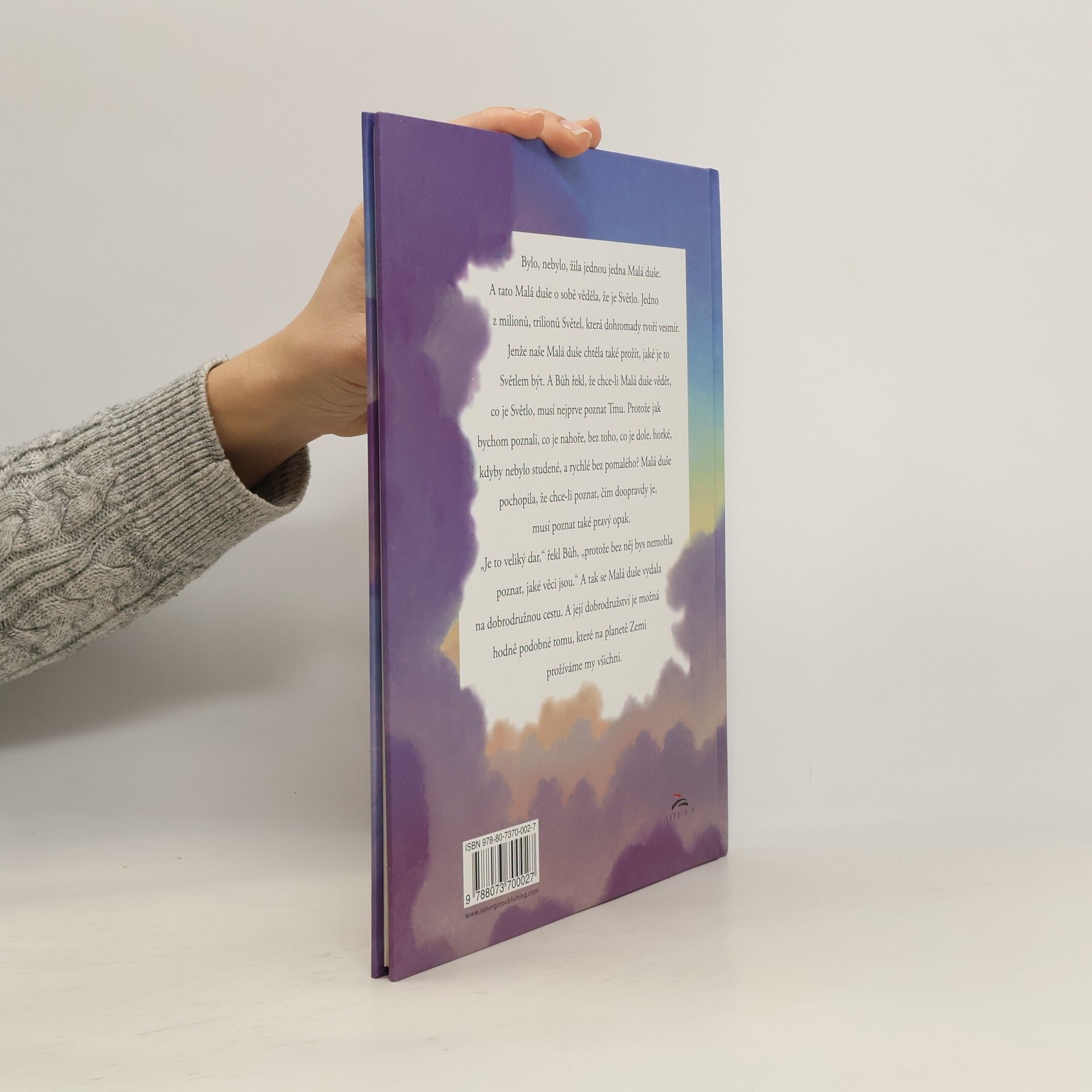 Kniha Hovory s Bohem pro děti s barevnými ilustracemi. Malá duše a Slunce je prosté a působivé vyprávění pro děti, ve kterém budou objevovat Boha, kterého mohou milovat, protože Bůh je láska – a všechny malé dušičky jsou jeho částečkami. Možná, že i rodiče u této knihy znovu objeví, kým skutečně jsou… Bylo nebylo, žila jednou jedna Malá duše. A tato Malá duše o sobě věděla, že je Světlo, jedno z milionů, trilionů Světel, která dohromady tvoří vesmír. Jenže naše Malá duše chtěla také prožít jaké to je být Světlem. A Bůh řekl, že chce-li Malá duše vědět, co je Světlo, musí nejprve poznat Tmu. Protože jak bychom poznali co je nahoře bez toho, co je dole, horké, kdyby nebylo studené a rychlé bez pomalého? Malá duše pochopila, že chce-li poznat, čím doopravdy je, musí poznat také pravý opak. „Je to veliký dar,“ řekl Bůh, „protože bez něj bys nemohla poznat, jaké věci jsou.“ A tak se Malá duše vydala na dobrodružnou cestu. Její příběh je možná hodně podobný tomu, které na planetě Zemi prožíváme my všichni.