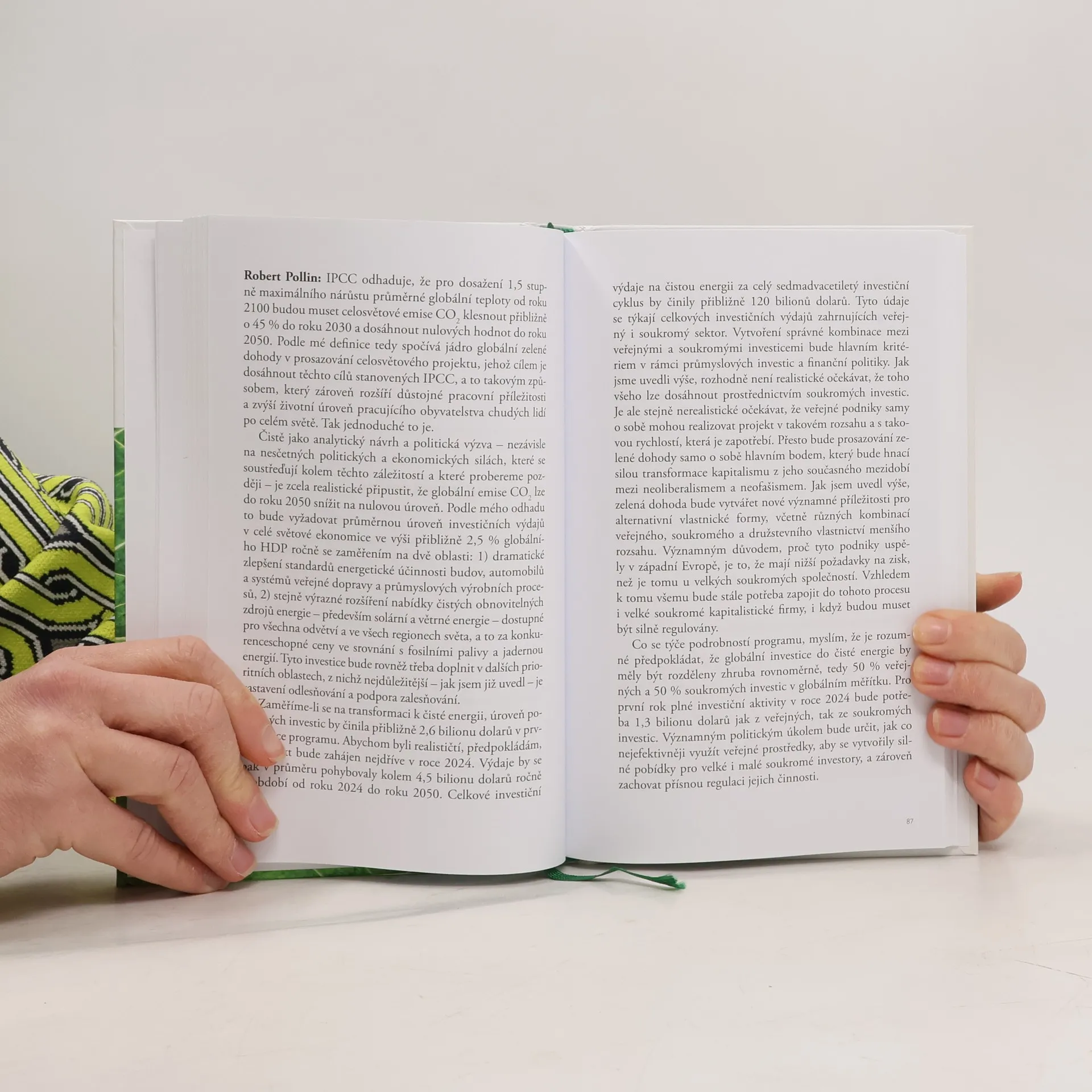 Noam Chomsky, filozof, lingvista, společenský kritik a aktivista, a Robert Pollin v této knize mapují katastrofické důsledky nekontrolované změny klimatu a představují plán změny. Lidstvo musí přestat spalovat fosilní paliva a učinit tak způsobem, který zlepší životní úroveň obyvatel. To je cílem zelené dohody a, jak autoři objasňují, je to zcela proveditelné. Chomsky s Pollinem argumentují proti obavám, které vyplývají z přechodu na zelenou ekonomiku, a vysvětlují, jak tyto falešné obavy podporují popírání klimatu. Tato kniha ukazuje, jak lze politicky i ekonomicky překonat klimatickou krizi.