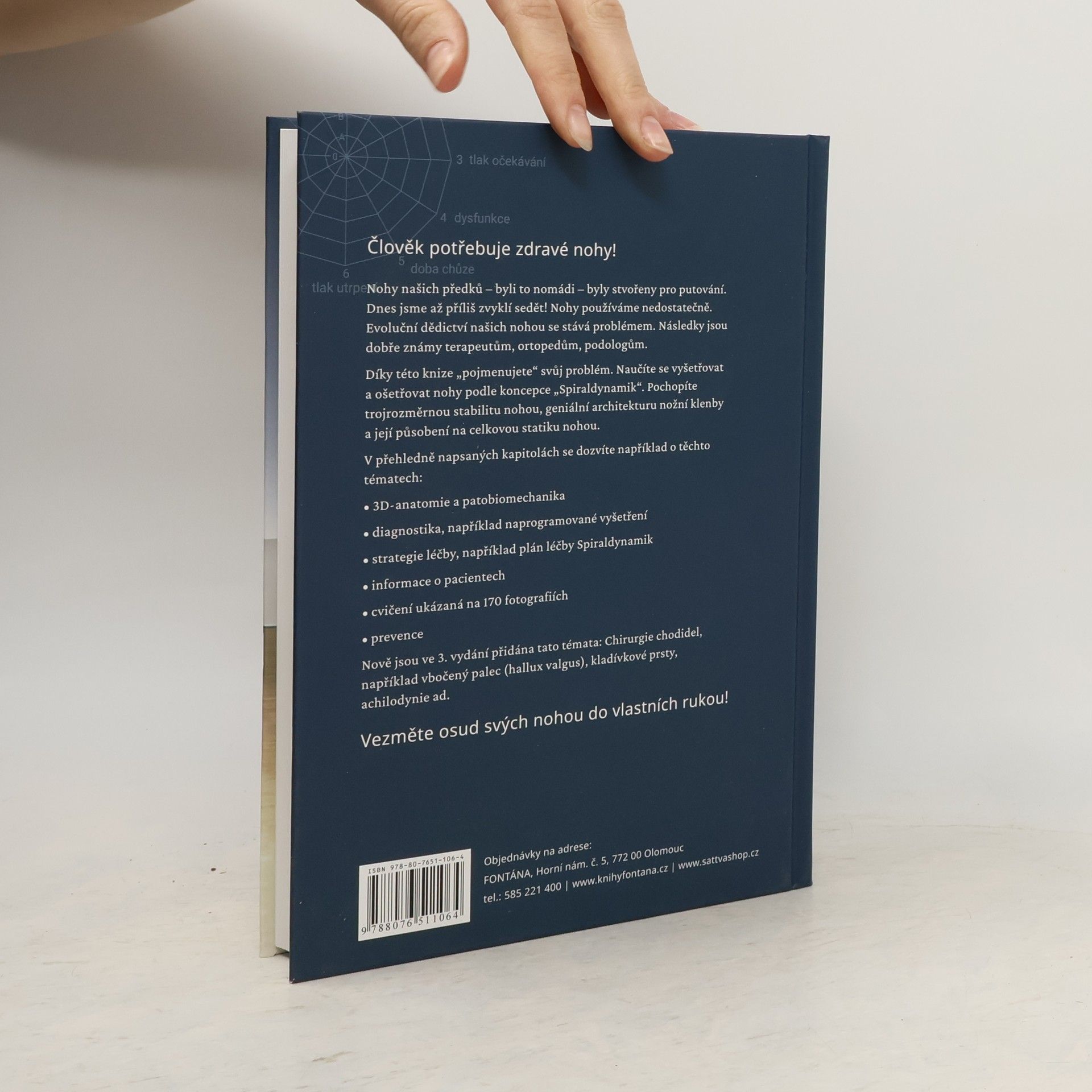 Spiraldynamik - léčba naprogramovaná k dosažení konkrétních výsledků Člověk potřebuje zdravé nohy! Nohy našich předků – byli to nomádi – byly stvořeny pro putování. Dnes jsme až příliš zvyklí sedět! Nohy používáme nedostatečně. Evoluční dědictví našich nohou se stává problémem. Následky jsou dobře známy terapeutům, ortopedům, podologům. Díky této knize „pojmenujete“ svůj problém. Naučíte se vyšetřovat a ošetřovat nohy podle koncepce „Spiraldynamik“. Pochopíte trojrozměrnou stabilitu nohou, geniální architekturu nožní klenby a její působení na celkovou statiku nohou. V přehledně napsaných kapitolách se dozvíte například o těchto tématech: • 3D¬ anatomie a patobiomechanika • diagnostika, například naprogramované vyšetření • strategie léčby, například plán léčby Spiraldynamik • informace o pacientech • cvičení ukázaná na 170 fotografiích • prevence Nově jsou ve 3. vydání přidána tato témata: Chirurgie chodidel, například vbočený palec (hallux valgus), kladívkové prsty, achilodynie ad. Vezměte osud svých nohou do vlastních rukou!