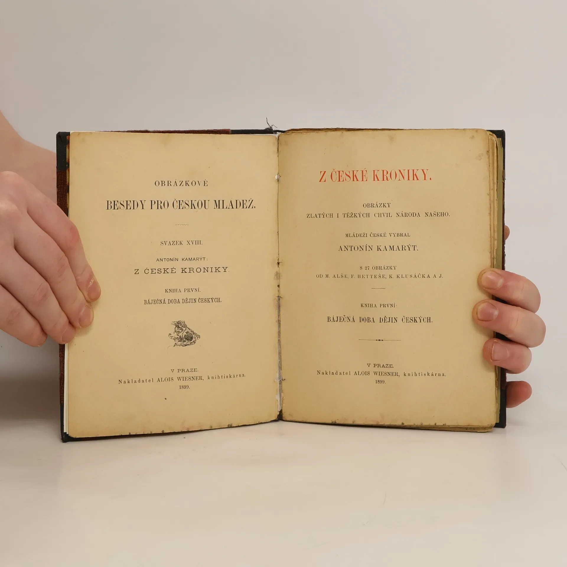 Kniha první: Báječná doba českých dějin. S 27 obrázky od M. Alše, F. Hetteše, K. Klusáčka a j.
