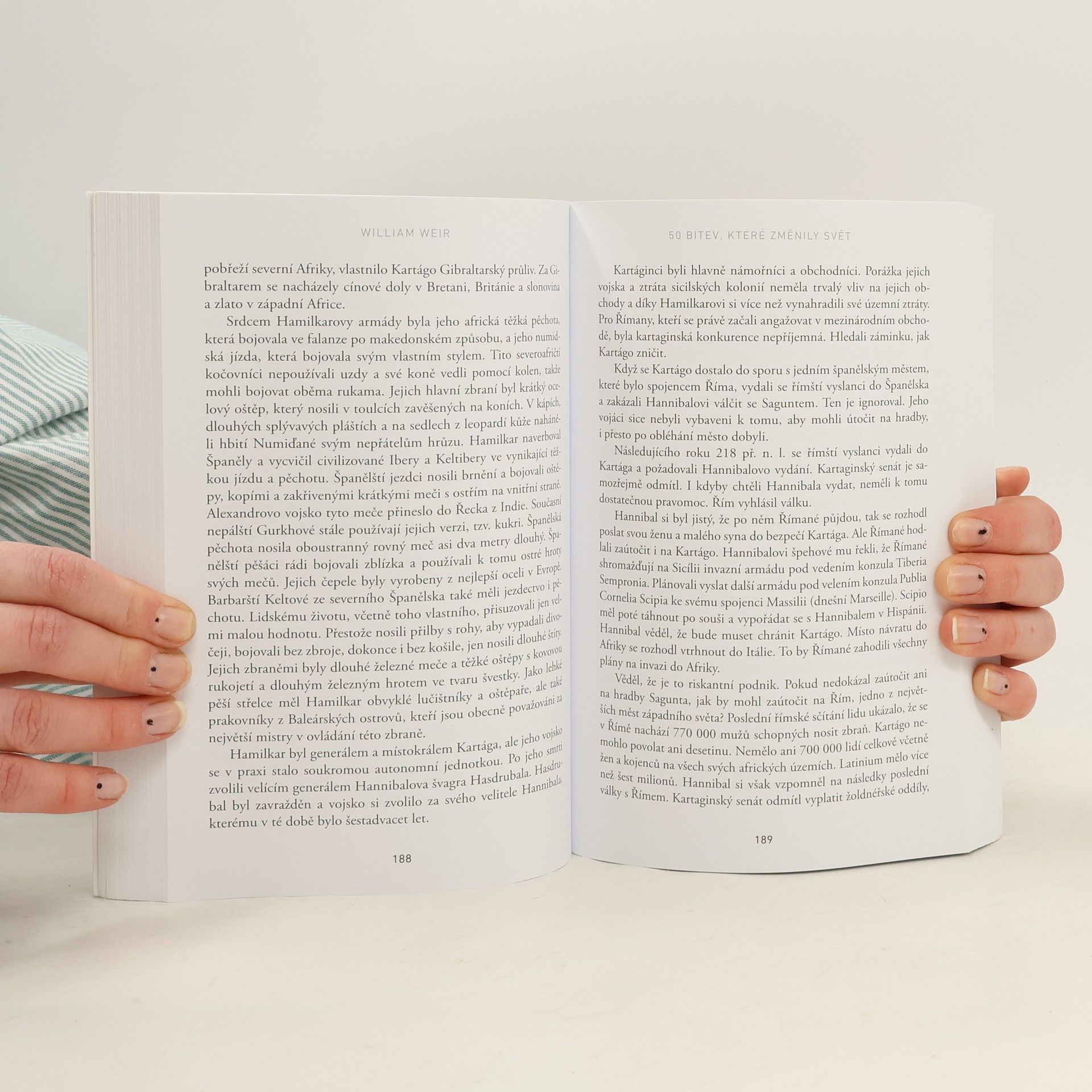 Je padesát bitev málo, nebo moc? William Weir na reprezentativním vzorku ozbrojených konfliktů ukazuje, že dějiny skutečně píší vítězové! Kniha se nezaměřuje na oslavování válčení, ale přináší nový pohled na světové dějiny prostřednictvím klíčových bitev, které zásadně ovlivnily uspořádání světa, jak ho známe dnes. Konflikty sahají od dávné minulosti až do dvacátého století a zahrnují jak notoricky známé bitvy, jako Marathón či Stalingrad, tak i ty méně známé, jejichž význam byl zapomenut. Autor ukazuje, že žádná bitva nevznikla „zčistajasna“ a že každému konfliktu předcházela řada problémů a touha po moci. Vítězství nebylo vždy tak samozřejmé, jak se může zdát. Kniha se zaměřuje na aspekty jako přínos pro demokracii, střet kultur a technologický pokrok, který války často přinášejí. Většina vojevůdců usilovala o minimalizaci ztrát svých mužů a inovovala taktiku boje. I když autor nemá prostor na podrobné líčení dobového kontextu, předkládá obraz pětadvaceti století, během nichž se táhne krvavá linie fatálních bitev, které formovaly naši současnost. William Weir je vojenský historik a publicista, autor mnoha vysoce hodnocených knih zaměřených na vojenství a zbraně.