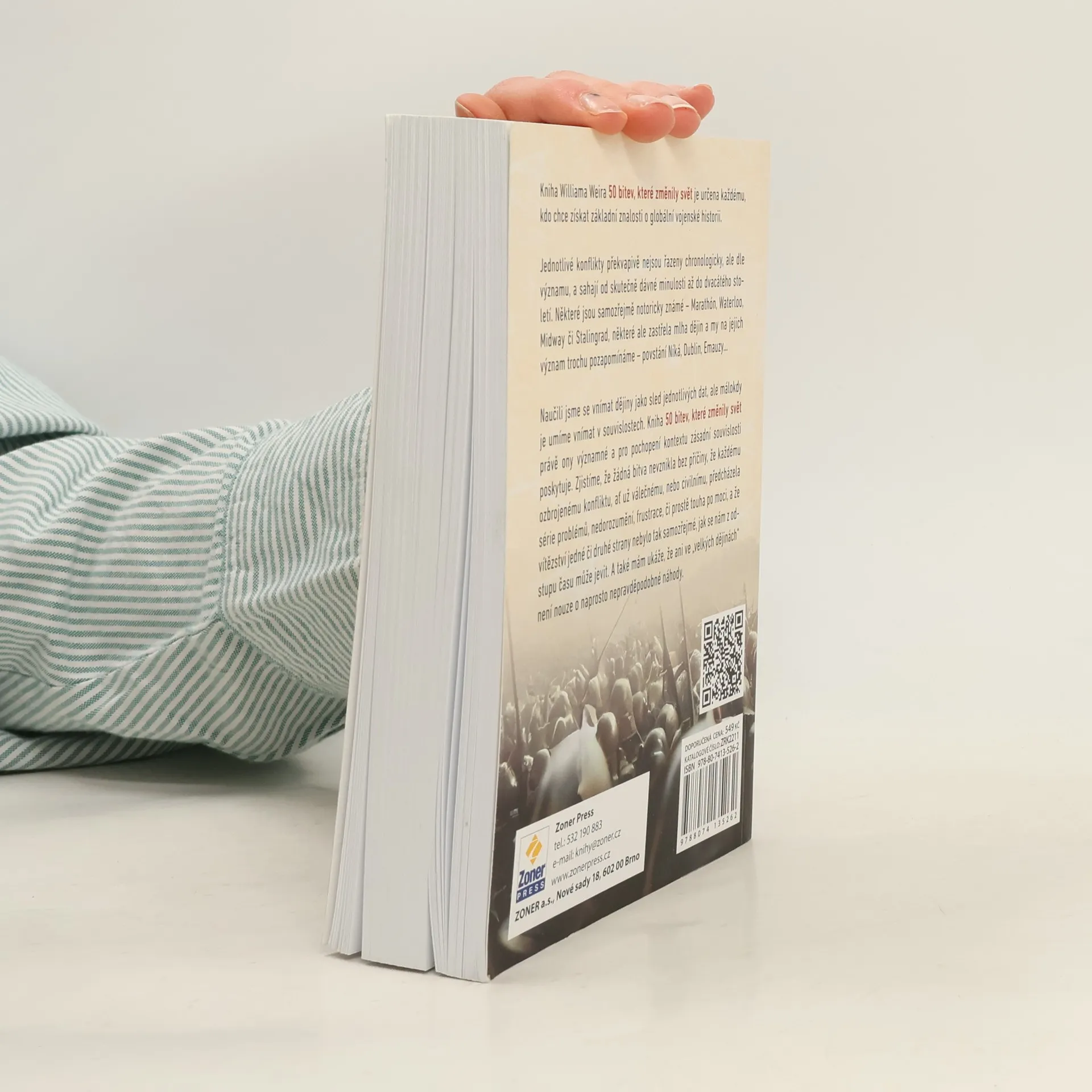Je padesát bitev málo, nebo moc? William Weir na reprezentativním vzorku ozbrojených konfliktů ukazuje, že dějiny skutečně píší vítězové! Kniha se nezaměřuje na oslavování válčení, ale přináší nový pohled na světové dějiny prostřednictvím klíčových bitev, které zásadně ovlivnily uspořádání světa, jak ho známe dnes. Konflikty sahají od dávné minulosti až do dvacátého století a zahrnují jak notoricky známé bitvy, jako Marathón či Stalingrad, tak i ty méně známé, jejichž význam byl zapomenut. Autor ukazuje, že žádná bitva nevznikla „zčistajasna“ a že každému konfliktu předcházela řada problémů a touha po moci. Vítězství nebylo vždy tak samozřejmé, jak se může zdát. Kniha se zaměřuje na aspekty jako přínos pro demokracii, střet kultur a technologický pokrok, který války často přinášejí. Většina vojevůdců usilovala o minimalizaci ztrát svých mužů a inovovala taktiku boje. I když autor nemá prostor na podrobné líčení dobového kontextu, předkládá obraz pětadvaceti století, během nichž se táhne krvavá linie fatálních bitev, které formovaly naši současnost. William Weir je vojenský historik a publicista, autor mnoha vysoce hodnocených knih zaměřených na vojenství a zbraně.