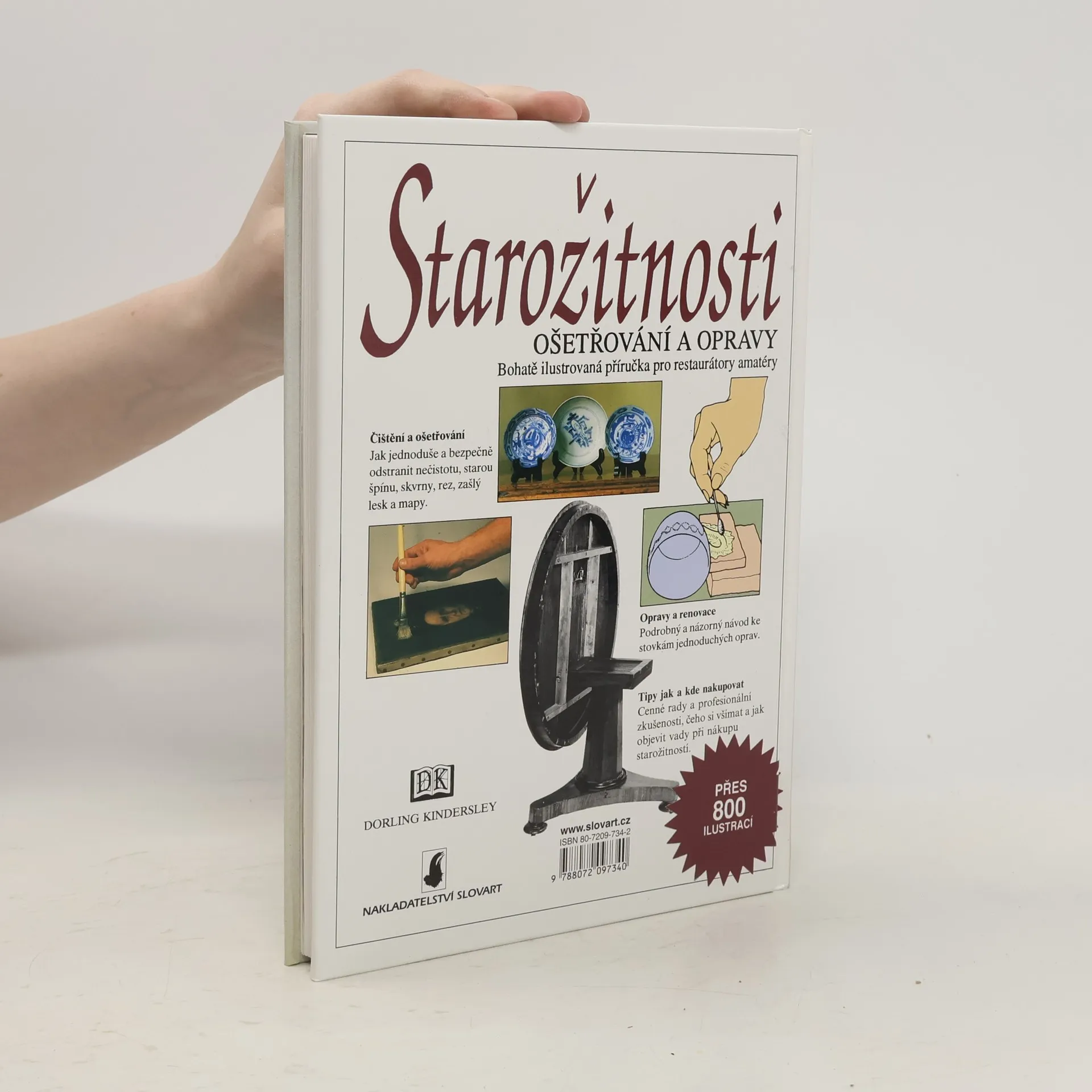 Bohatě ilustrovaná příručka pro restaurátory amatéry aneb Jak udržovat, renovovat a opravovat všechno cenné a hodnotné ve vaší domácnosti. Čištění a ošetření - jak jednoduše a bezpečně odstranit nečistotu, starou špínu, skvrny, rez, zašlý lesk a mapy. Opravy a renovace - podrobný a názorný návod ke stovkám jednoduchých oprav. Tipy jak a kde nakupovat - cenné rady a profesionální zkušenosti, čeho si všímat a jak objevit vady při nákupu starožitností.