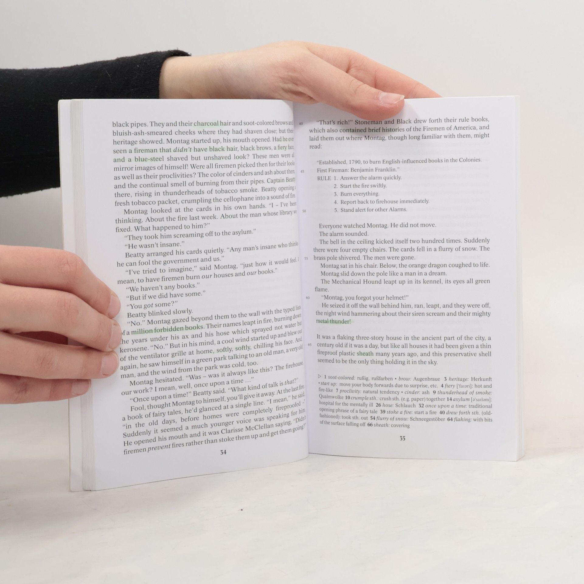 Guy Montag is a fireman, his job is to burn books, which are forbidden.