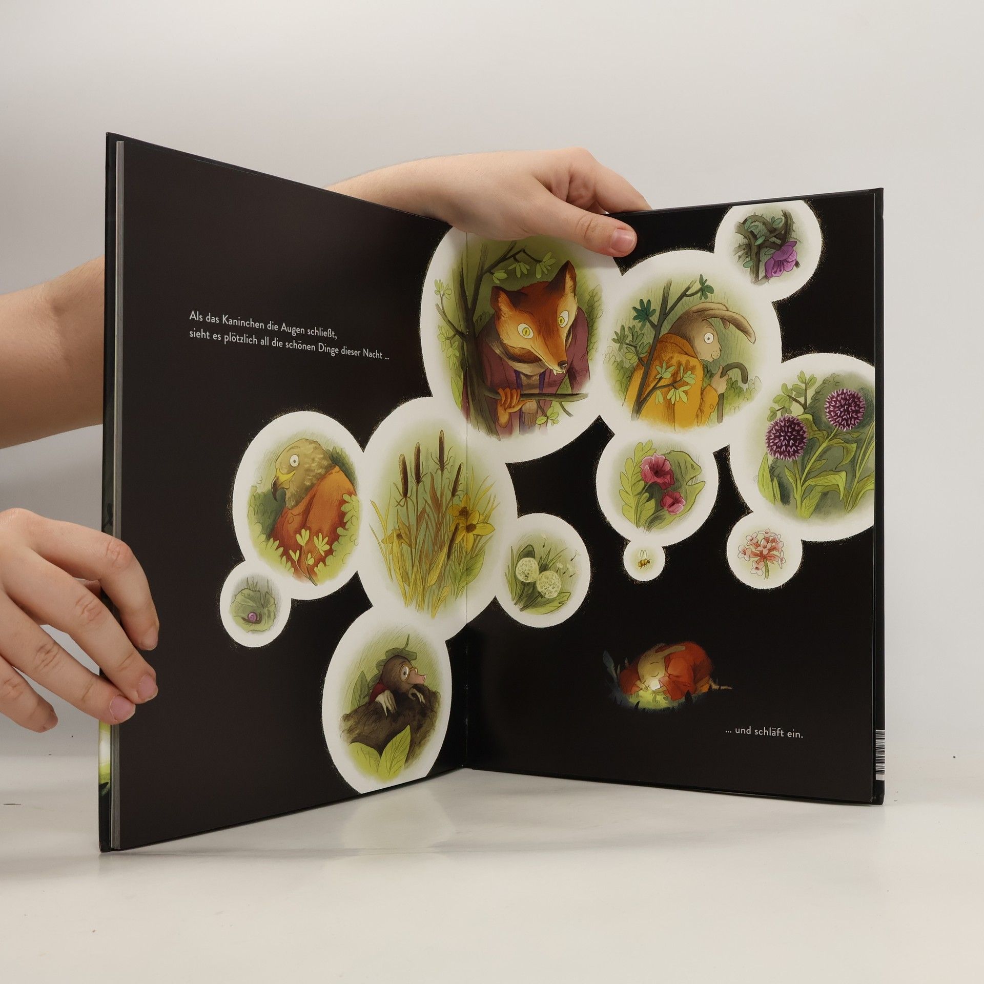 Das Kaninchen geht gegen Abend in den Wald hinein und wird von der Dunkelheit überrascht. Zum Glück findet es mitten im Wald ein Licht! Das Licht knistert, es lässt sich formen, kneten und mittragen. Nun braucht sich das Kaninchen nicht mehr zu fürchten - aber auch andere Tiere wollen ein Stück des kostbaren Lichts. Das Kaninchen teilt ausgerechnet mit jenen, vor denen es gewarnt wurde. Dabei baut es nicht nur Vorurteile ab, sondern lernt mit dem abnehmenden Licht auch die Schönheit des Waldes in der Nacht kennen.