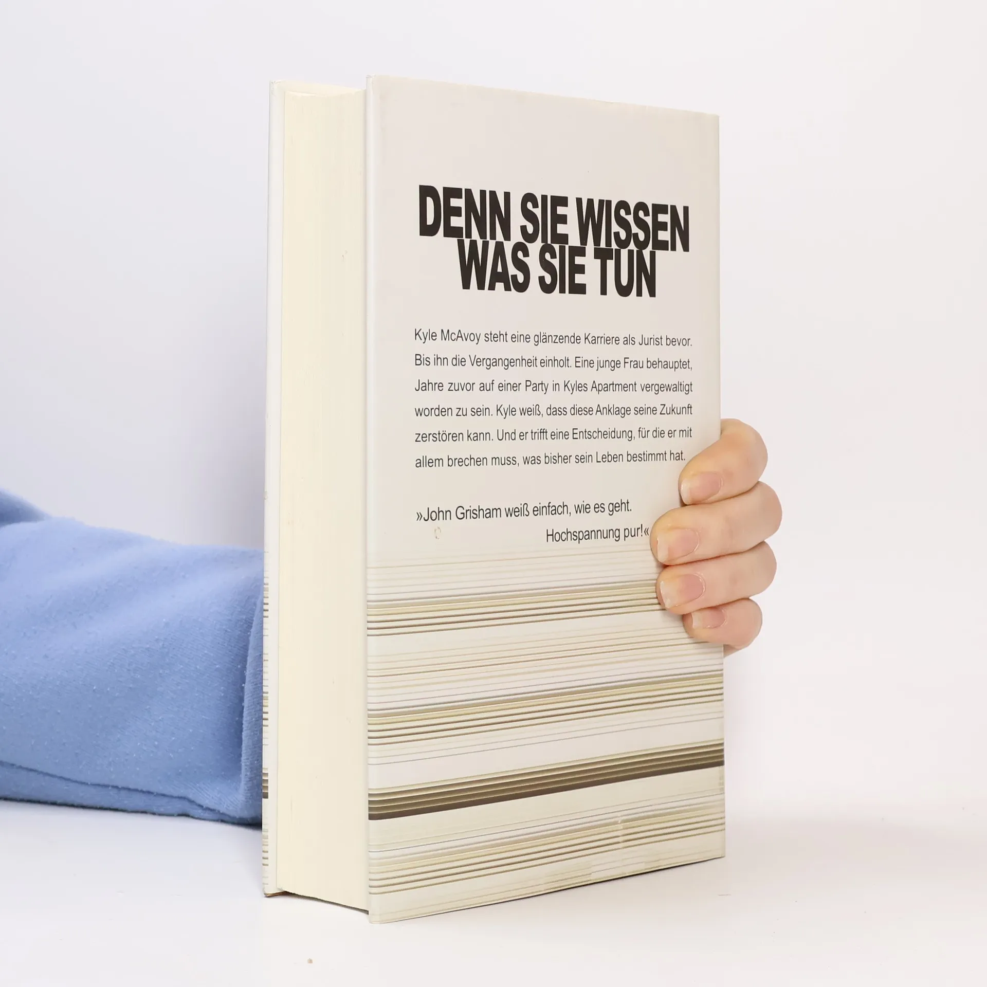 Denn sie wissen, was sie tun Kyle McAvoy steht eine glänzende Karriere als Jurist bevor. Bis ihn die Vergangenheit einholt. Eine Frau behauptet, Jahre zuvor auf einer Party in Kyles Wohnung vergewaltigt worden zu sein. Kyle weiß, dass diese Anklage seine Zukunft zerstören kann. Und er trifft eine Entscheidung, für die er mit allem brechen muss, was bisher sein Leben bestimmt hat. Der neue Grisham – ein Thriller um Macht, Korruption und eine Welt, der jegliche Moral abhandengekommen ist. Noch eine Prüfung, dann hat Kyle McAvoy sein Examen in der Tasche. Die Welt liegt dem brillanten Juristen zu Füßen, schon jetzt kann er sich vor Angeboten der renommiertesten Kanzleien kaum retten. Kyle aber geht es nicht um Macht und Profit, er möchte sein Wissen in den Dienst der Öffentlichkeit stellen. Doch bevor er über seine Zukunft entscheiden kann, droht ihm die Vergangenheit zum Verhängnis zu werden. Eine Episode aus Collegezeiten, die er nur zu gern vergessen hätte. Die falschen Leute erfahren davon und erpressen ihn. Kyle wird gezwungen, einen Job anzunehmen, für den sich jeder andere Jurist ein Bein ausreißen würde. Er wird Partner bei Scully & Pershing, der mächtigsten Anwaltskanzlei der Welt. Noch bevor Kyle in Erfahrung bringen kann, was seine Erpresser mit diesem Auftrag bezwecken, gerät seine Welt zum Alptraum, der ihn die Freiheit, wenn nicht das Leben kosten könnte.