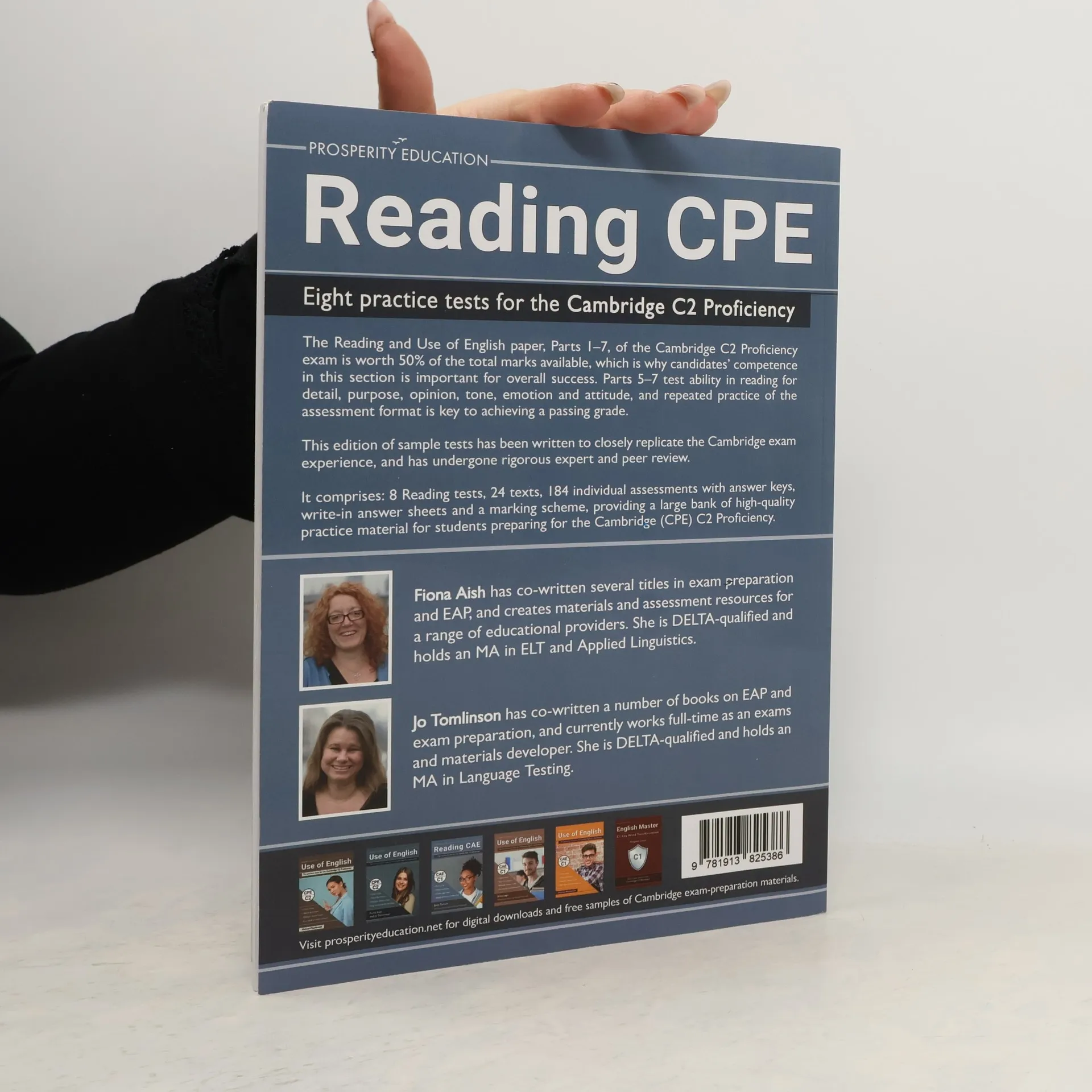 Arkusz Reading and Use of English obejmujący części 1-7 egzaminu C2 Proficiency (CPE) pozwala uzyskać 50% ze wszystkich możliwych do zdobycia punktów, dlatego wynik z tej sekcji jest tak ważny dla zdania całego egzaminu. Części 5-7 tego arkusza sprawdzają umiejętność czytania m.in. pod kątem rozumienia szczegółowych informacji, określania celu wypowiedzi, odróżniania faktów od opinii i rozpoznawania intencji autora tekstu, a systematyczne wykonywanie ćwiczeń w formacie zadań egzaminacyjnych z pewnością przyczyni się do końcowego sukcesu. Publikacja Reading CPE: Eight practice tests for the Cambridge C2 Proficiency zawiera 8 testów z zakresu Reading opracowanych tak, by wiernie odwzorowywały oficjalne arkusze egzaminu C2 Proficiency (CPE). Testy obejmują 24 oryginalne teksty, a łączna liczba pojedynczych, podlegających ocenie jednostek zadaniowych wynosi 184.